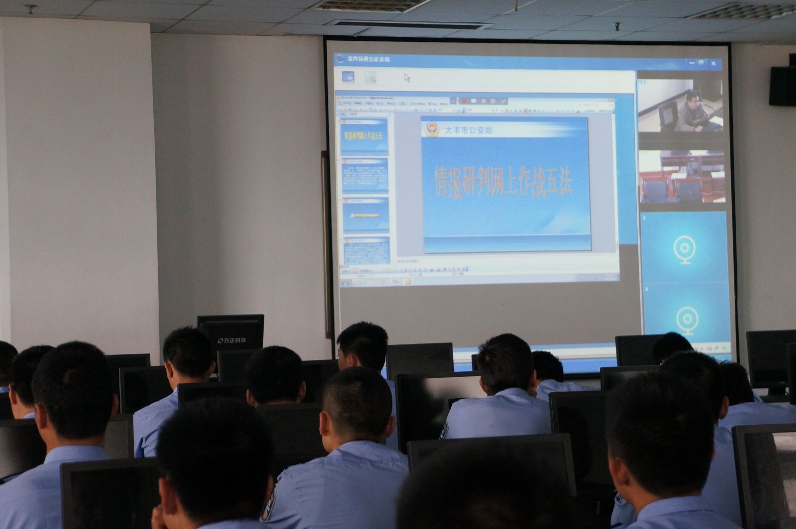 随后,张陈华主任通过远程系统,结合大丰市公安局情报中心具体工作内容和他所经办的典型案件,进行主题讲座。