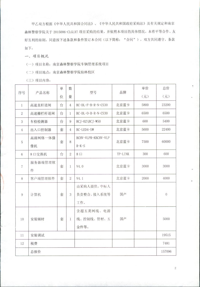 南京森林警察学院车辆管理系统采购项目(2015006-CLGLXT)采购合同