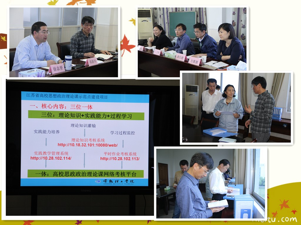 在此次学习调研活动中,马院书记徐志坚教授首先介绍了常熟理工学院的历史沿革、发展概况以及马克思主义学院机构建设、师资队伍建设、课程设置、教学管理等情况。高新华院长作了“高校思想政治理论课——课程考核模式改革与建设”的主题报告,详细介绍了该院依托网络管理系统,实施“三位一体”(理论知识+实践能力+过程学习)的教学和考核模式的改革成果。座谈会中,双方围绕大学生思想政治理论课专题化教学模式实施、考核方式改革、实践教学运行等情况进行了深入交流和热烈讨论。会后还观看了相关材料和评估档案,使思政部教师受益匪浅。