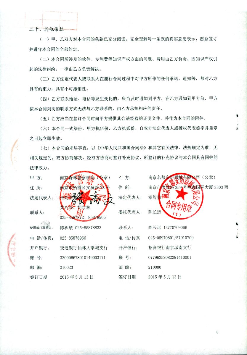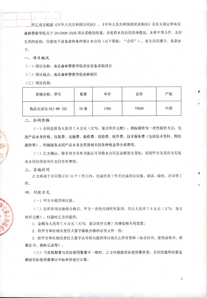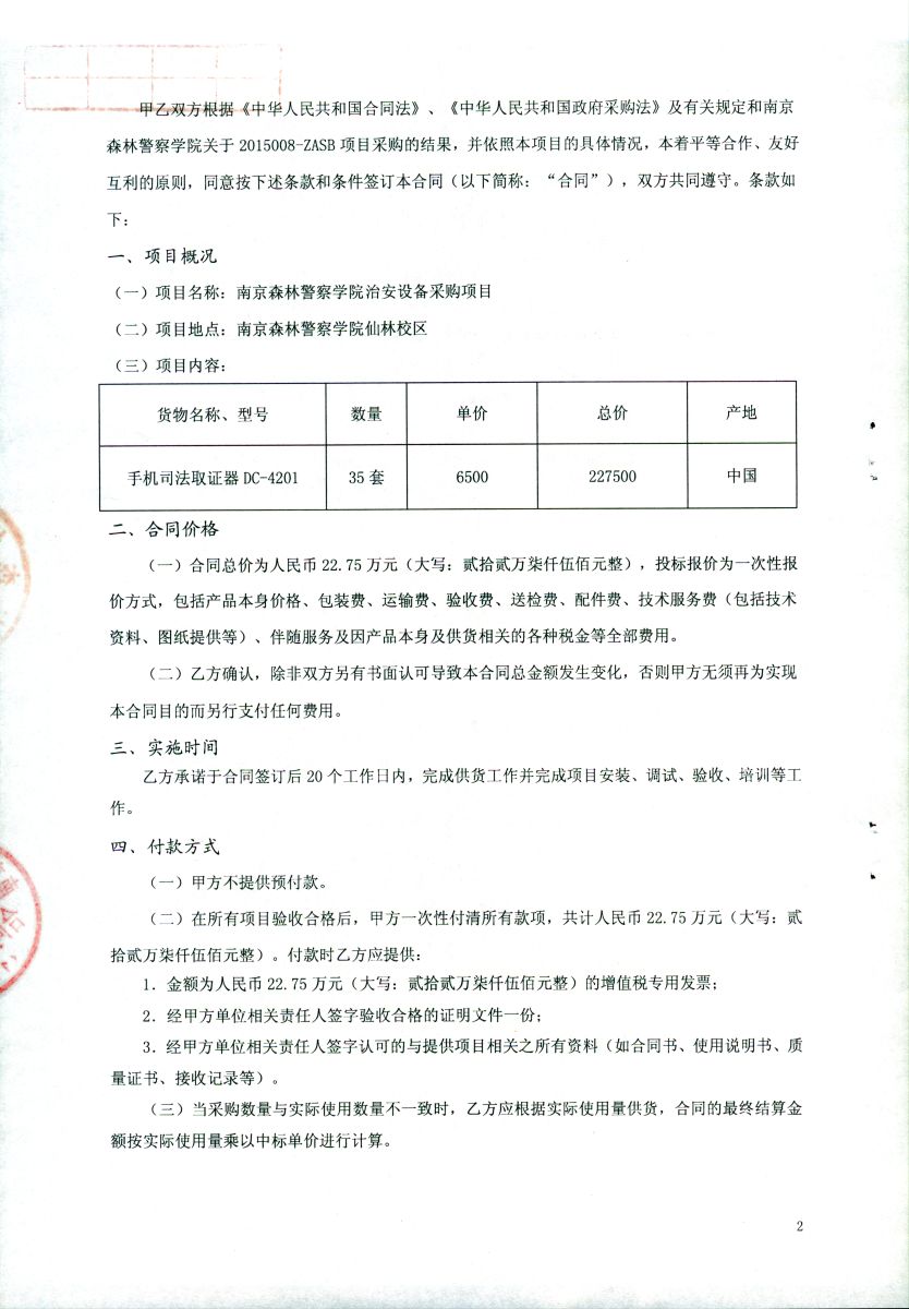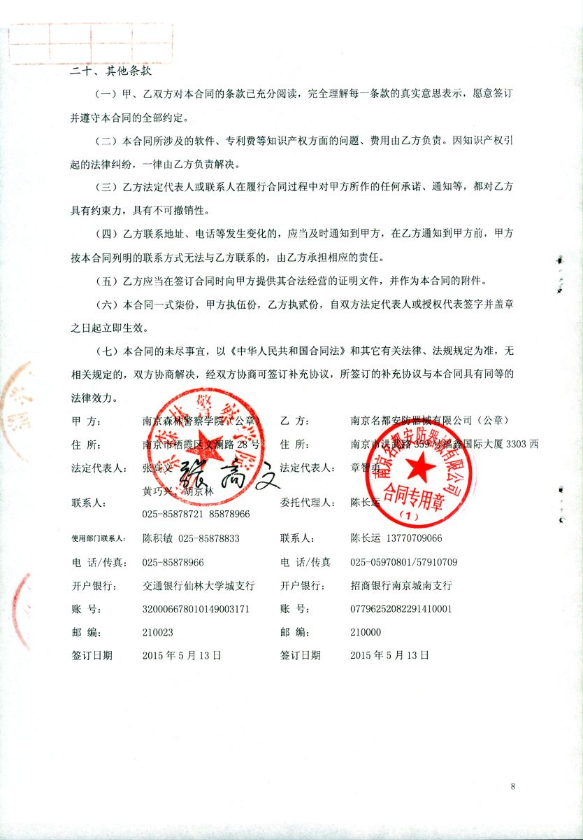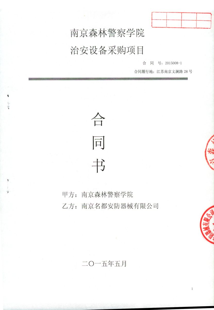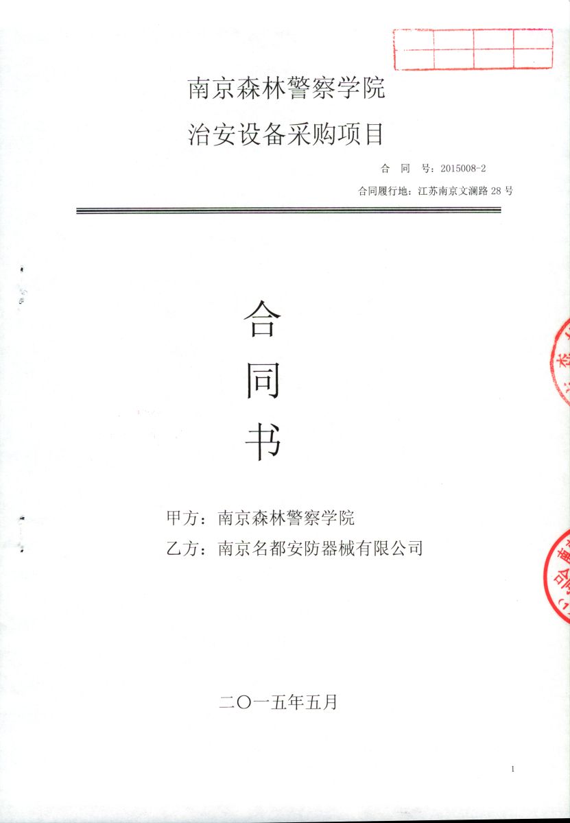 南京森林警察学院治安设备采购项目(2015008-ZASB)采购合同