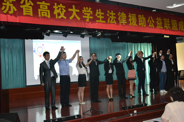 近日,江苏高校法律援助联盟在秦淮区金陵法律援助中心举行成立大会。该联盟是由南京大学、南京师范大学、河海大学、以及我校等11所高校的法律援助中心或法学协会发起,以江苏省热爱法律的高校学生为主体,以高校教授为学术顾问,法官、检察官、律师等为实务指导的自治性联合公益组织。我校法学协会的同学们在谢晓清老师的带队下参加了会议。