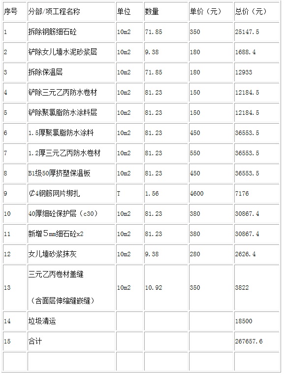 服务要求:自合同签订之日起30个日历日内完成供货、安装、调试等工作,非人为故障提供5年原厂免费质保、技术服务。投标时需带卷材样品,且在施工现场对卷材进行抽检(送质检站)。所有面积及卷材等以实际施工为准。维修施工质量要求:按JGJ/t53-2011房屋渗漏修缮技术规程要求。验收要求:按JGJ/T53-2011-8 质量验收执行。安全措施:按JGJ/T53-2011-9 安全措施要求执行,并订立全责安全合同。(按规范要求施工、出安全事故由乙方承担全责)