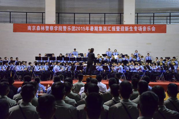 警乐团同学用精彩的演奏对新生的到来表达了诚挚的欢迎。在此次音乐会中,警乐团以自己的方式纪念了中国人民抗日战争暨世界反法西斯战争胜利70周年,不仅展示了警乐团暑期集训的成果,也让新生们享受了一场视听盛宴。