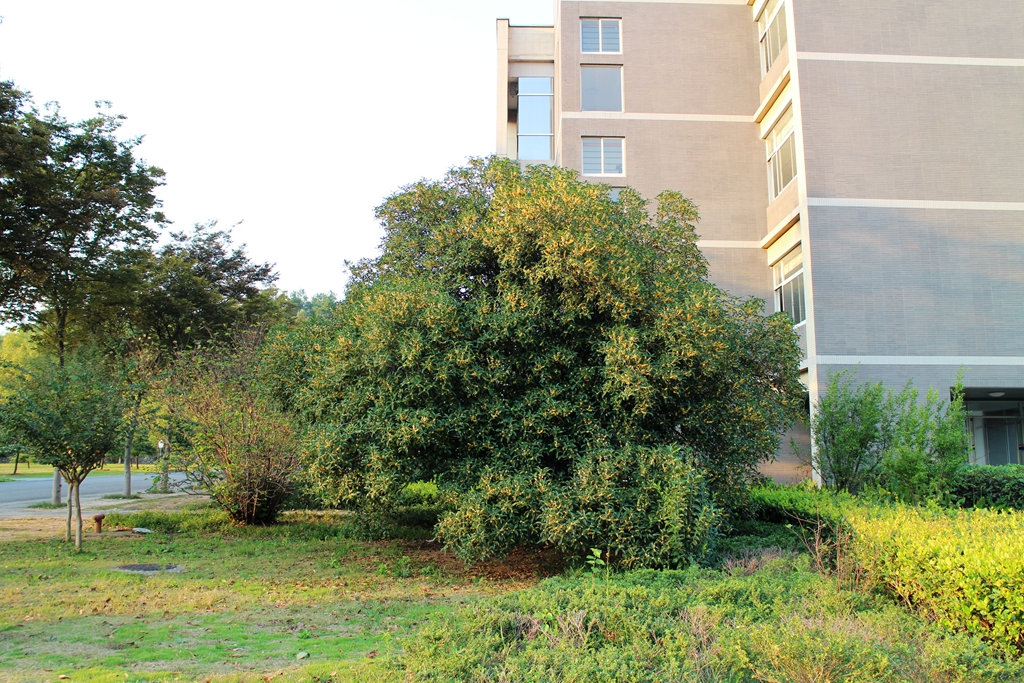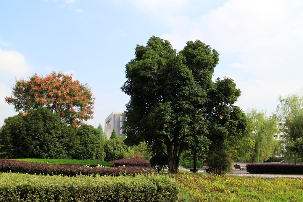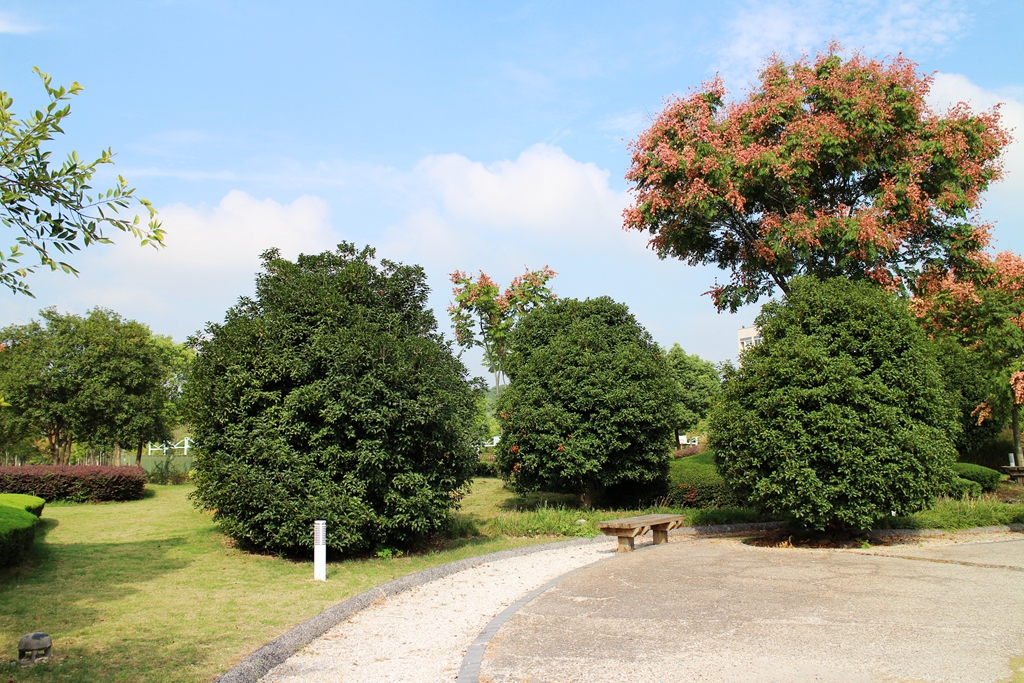 校园分布:学生公寓E组团周围,图书馆北侧湖边,游泳池北侧绿化带。