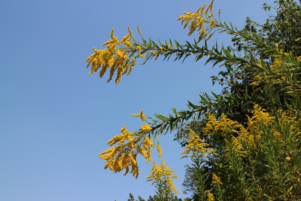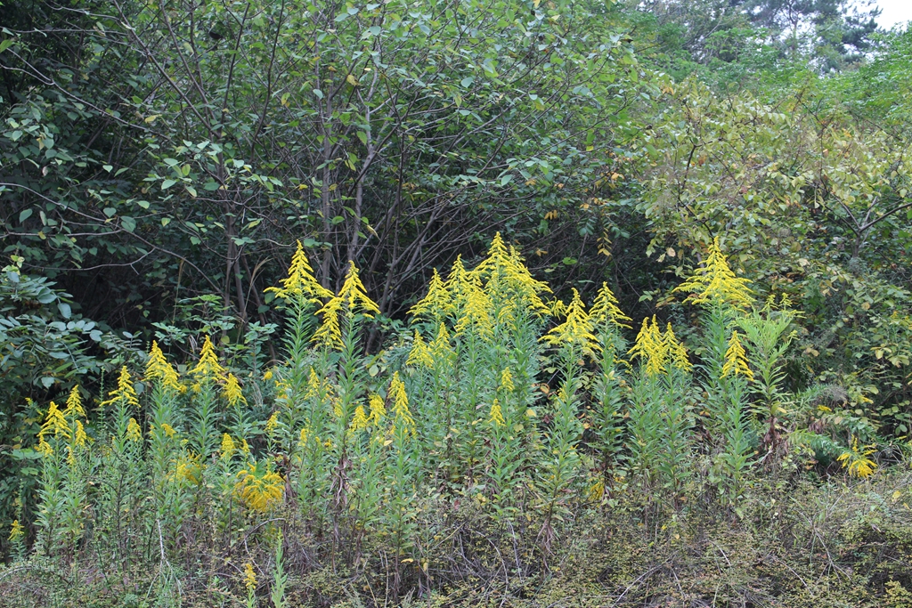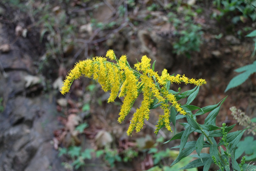用途价值:园林栽培供观赏。 校园分布:学生公寓E组团周围。 4. 加拿大一枝黄花(Solidago canadensis) 用途价值:又名金棒草、北美一枝黄花、黄莺、美洲一枝黄花、一枝黄花等,原产北美,我国早期引种栽培供观赏,是鲜切花的良好材料,后因繁殖力较强,逸为入侵植物。 校园分布:丁山野生。