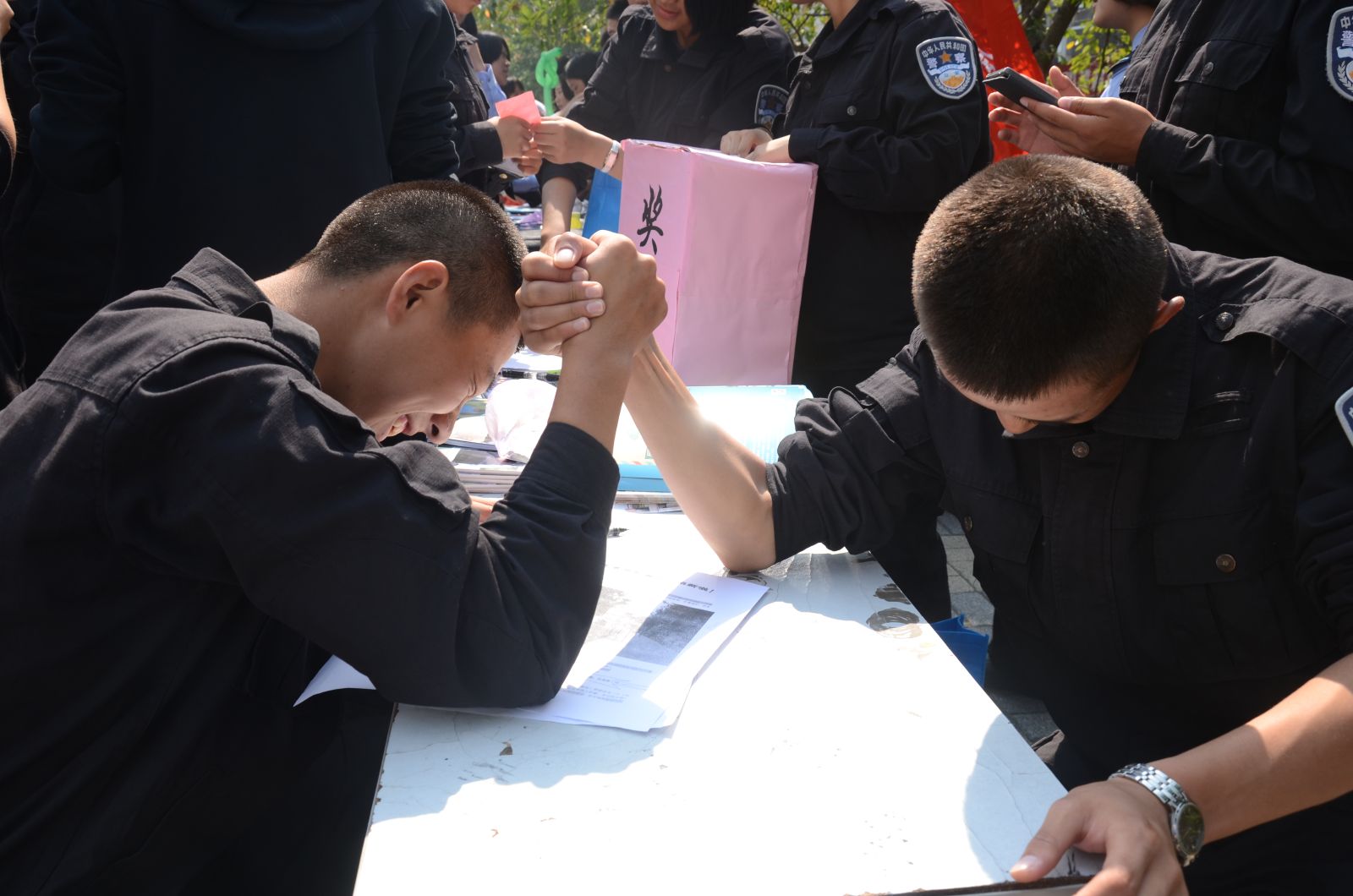 在实践部的同学们所负责的扳手腕活动中,此起彼伏的加油声形成一道靓丽的风景线;而以抽奖的方式抽出来的绕口令则绕晕了许多同学,引出欢笑一片;还有许多同学在七巧板前认真思索着,不断摆弄着手上的七巧板;而在脑筋急转弯环节中,对于各种脑洞大开的问题,大多数的同学在知道答案后才“豁然开朗”。整个游园会活动中,同学们欢声笑语不断,绽放出警校的活力激情。