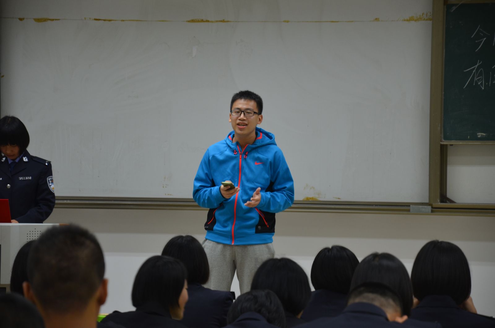 为响应校园十佳歌手大赛,治安二大队学生分会于2015年10月30日18:30在教学楼110教室举办了大队内部歌手选拔赛。本次选拔赛的评委由往年校园十佳歌手代表及大众评委组成。本次比赛共有21名选手参与,历时两个半小时。