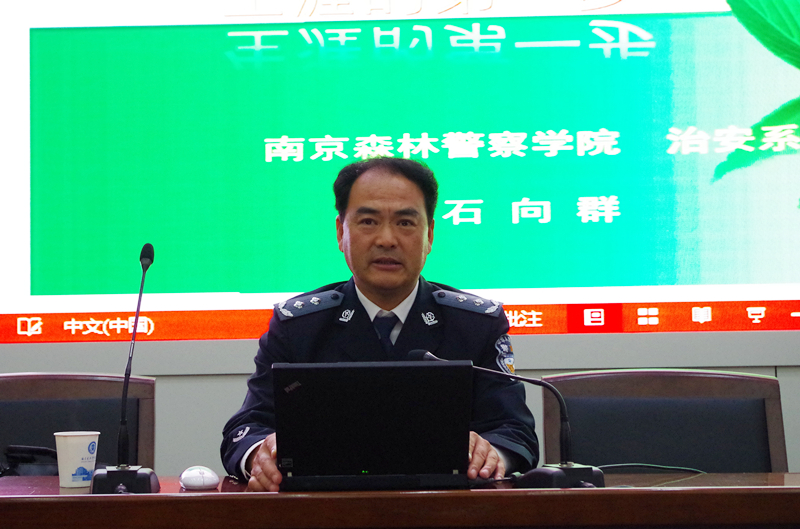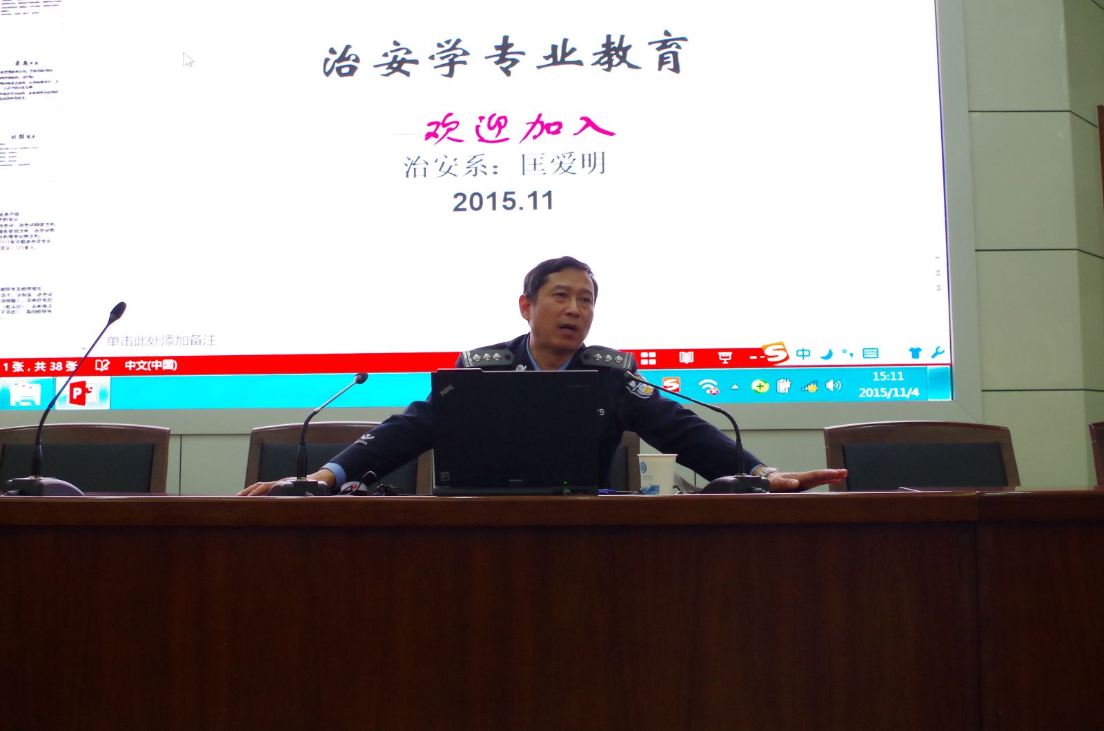 2015年11月4日下午,我校治安系主任石向群教授和副主任匡爱明副教授在大报告厅为治安系2015级全体新生开展了治安学专业教育讲座活动。
