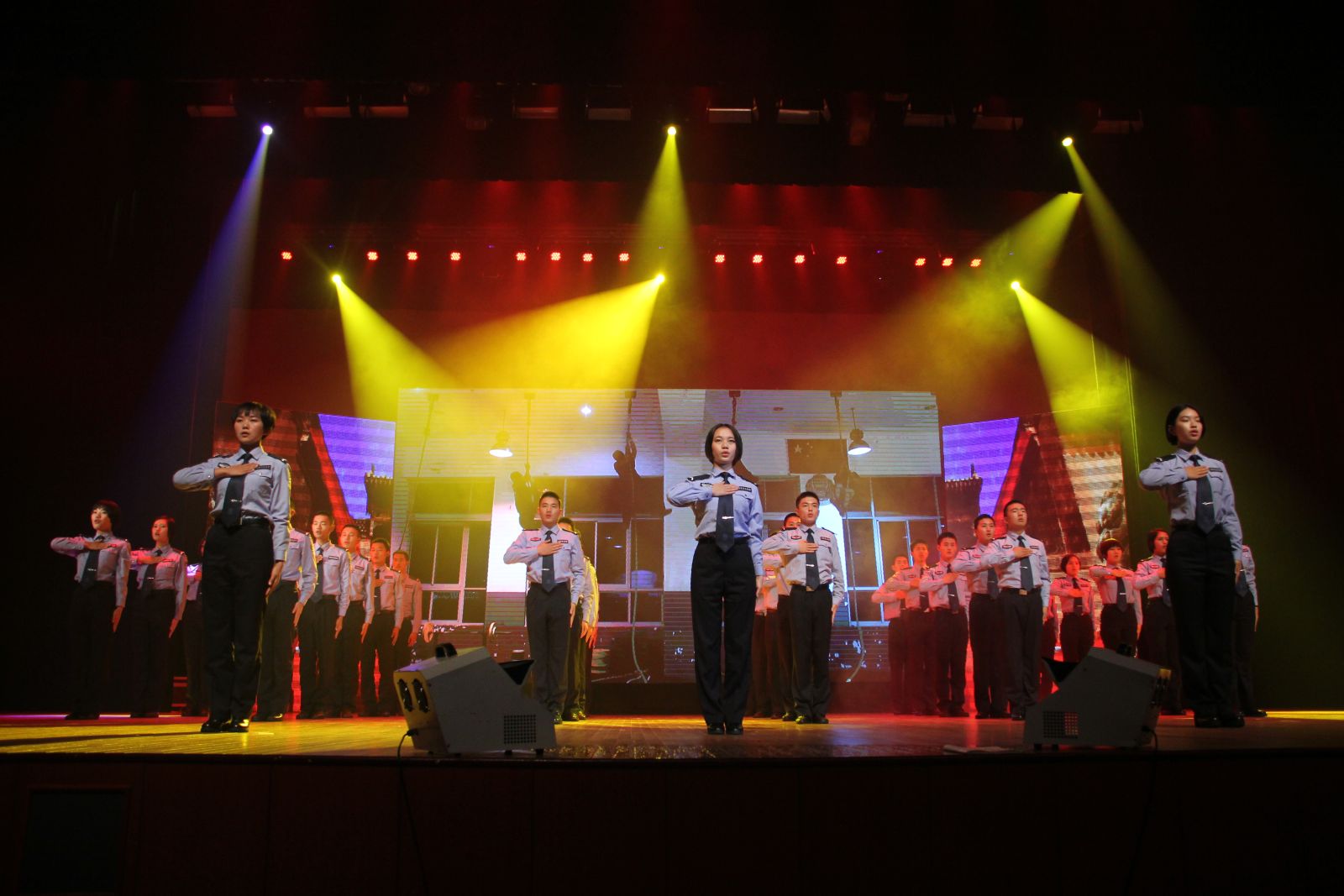 我校心理健康协会同学们表演的节目——《精忠只为报家国》,以93的全场最高分,荣获一等奖。本次表演以《精忠报国》为主题曲,抒发了警校生对国家的热爱与忠诚。表演过程中,我校武术协会同学们画龙点睛般的配合,将全场的气氛推向了又一个高潮。曲终时的一声“敬礼”,庄严肃穆,展现的是铮铮铁骨,表达的是赤子之心,台下的南森学子整齐回礼,现场响起了热烈掌声。