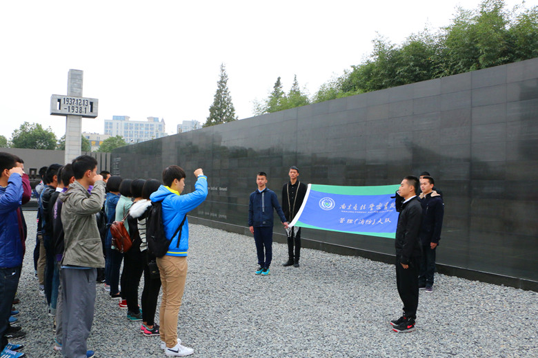 “欲知大道,必先为史”。每逢重大历史时刻,我们总会回望历史,让历史之光照亮前路。此次主题团日活动围绕“铭记历史,祭悼英魂”、“珍爱和平,践行中国梦”和“开创未来,实现警察梦”三个主题开展。同学们沿着大屠杀纪念馆的通道进入馆内,注目着每一幅画面和展品,随后同学们来到万人坑旁的祭灵泉。祭灵泉的“泉水”来自万人坑遗址下引出的地下水,喷涌的泉水映照着水底的灯光,仿佛南京大屠杀遇难者的殷红鲜血。随后,同学们来到万人坑遗址,那里是日本侵略者对中国人民犯下滔天罪行的铁一般的证据。接下来举行了宣誓仪式,同学们在公管1402区队长边江远同学带领下庄严宣誓:铭记历史,不辱使命!同学们的呼喊声在万人坑上不断回旋,每位同学们都有所触动,宣誓结束后大家纷纷自觉捡拾纪念馆场内外的垃圾,以自己的实际行动为先烈们做一些自己力所能及的事情。