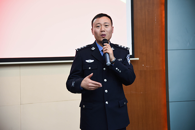最后,侦查二大队分团委书记董文超作了本次活动的总结致辞。他把同学们比作小草——生机勃勃,茁壮成长,“成长是正青春正能量的来源。即使在平凡中成长同样可以拥有青春的精彩与感动。”