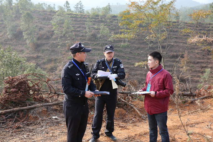 本次现场勘查实战化演练是福建省森林公安机关“大练兵、大培训、大比武”的重要活动之一,也是全国森林公安机关系统内的一次重要尝试。按照活动要求,福建各地市森林公安局在辖区内遴选五名民警参加竞赛,竞赛内容为滥伐林木案件的现场勘查。此次活动中,侦查系三位教师受邀担任考评专家,他们的参与对活动的成功开展发挥了积极作用。竞赛前,侦查系教师曾多次往返于不同山场,精心选择演练场地、设计基本案情、布置案件现场;竞赛中,侦查系教师对各参赛队伍的现场勘查组织指挥、痕迹物证提取、林木检尺、现场访问、临场分析及现场勘查卷宗制作等情况进行全方位、跟踪式考核;竞赛后,侦查系教师向参赛队伍通报现场勘查实战化演练情况,并公布了最后竞赛结果。