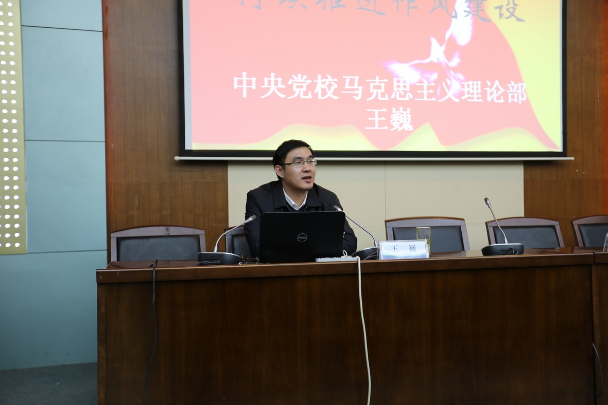 根据上级有关文件精神和“三严三实”专题教育的统一安排,12月30日,我校举办“三严三实”专题讲座,邀请中央党校中国特色社会主义理论体系研究中心研究员王巍,以《践行“三严三实”,持续推进作风建设》为题进行学习辅导。讲座由常务副校长张治平主持。