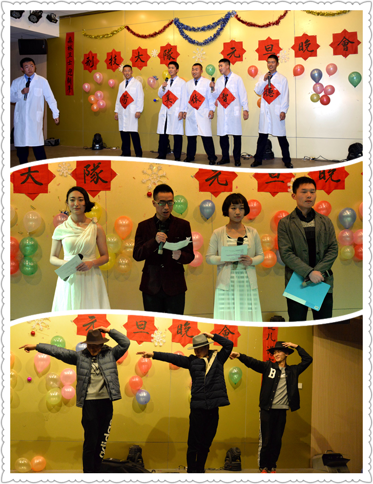大队学生会警体部成员的一曲《精忠报国》登台亮相,现场气氛逐渐被点燃;特邀侦查二大队带来的舞蹈节目《shake it》,舞蹈动感和激情瞬间为这个寒冬注入了一股暖流;刑技1306区队的反串表演《非诚勿扰》更成晚会的一大亮点,看警察蜀黍如何化身性感妩媚女嘉宾;《虎口脱险》等歌曲串烧和大队合唱团的《菊花台》给现场带来非凡听觉盛宴。而热情洋溢的歌舞串烧《Daddy》、《good boy》等更是展现了同学们的活力与积极向上的进取精神;小品《如此表功》、《警校生活》幽默诙谐,逗引观众热情高涨,捧腹大笑。