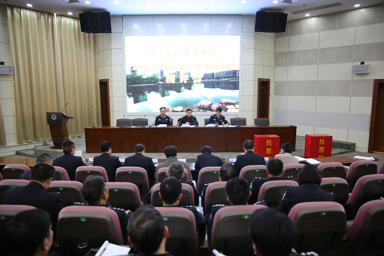 年度述职考核会上,王邱文向大会作党建述职和领导班子述职和个人工作总结。围绕“注重抓党建,夯基础”“ 注重抓班子、带队伍”和“ 注重揽全局,抓重点”三个主线,从加强政治理论学习、开展“三严三实”专题教育和“四有教师”“五好干部”教育实践活动、全面落实从严治党工作、全面推动学校发展等方面总结报告。校领导依次结合各自工作、学习及作风等方面情况进行述职述廉总结报告。蒋周明主席在讲话中对我校2015年工作取得的成绩表示肯定。他指出,在国家林业局党组的正确领导下,森警院领导班子“勤奋敬业、履职尽责、要求严格”,有力地引领了学校前进的方向,有力地保证了学校的和谐稳定,有力地推动了学校事业的发展,教职工队伍“上下和谐、目标一致、齐心协力”,取得了学校升格、扩规、增员、提质的快速发展,并希望学校紧抓全面深化生态文明建设和法治中国建设的历史机遇,不断谋划新思路,取得新发展。并以传道授业解惑为主题,与参会教师进行交流,对广大教师提出殷切希望。考核会上,第一届党代会党员代表对党建述职进行了投票测评,副处和副高以上教职工对领导班子进行了考核测评。