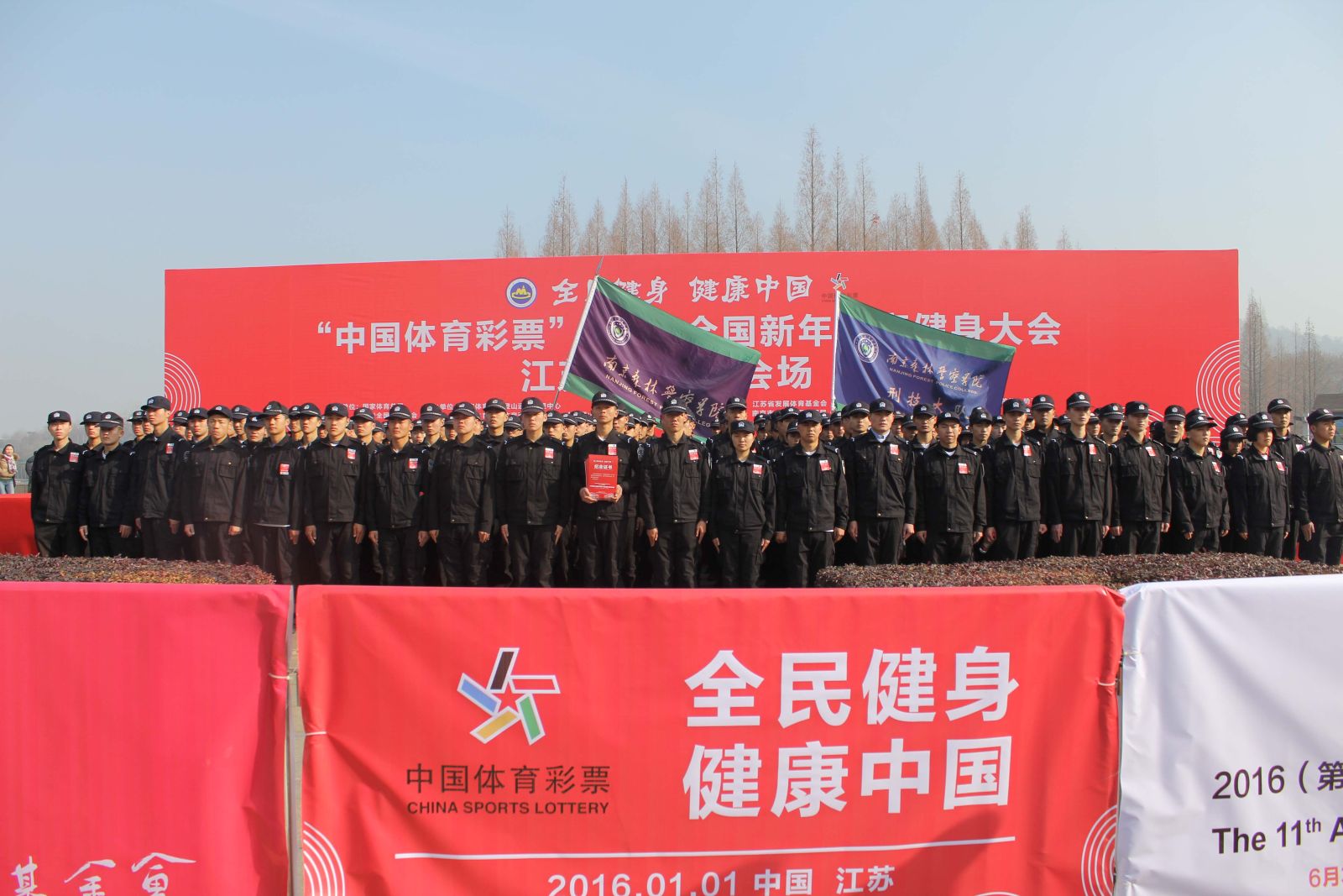 为进一步营造全民健身的良好氛围,引领科学健康的生活方式,“中国体育彩票”2016全国新年登高健身大会江苏·南京分会场于2016年1月1日上午在中山陵园风景区举行。刑技大队200名同学代表我校参加活动,刑技大队大队长罗元方及教务处老师杜飞带队。