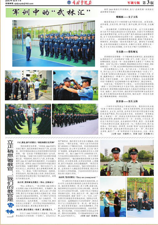 1月14日,江苏省高校校报2015年度优秀作品评选结果公布,我校《森林警院报》送评作品《传承》(作者:侦查1407石宛鑫)、作品《劳动.美》(作者:侦查1308刘沛卿)分别荣获图片类一等奖和二等奖。