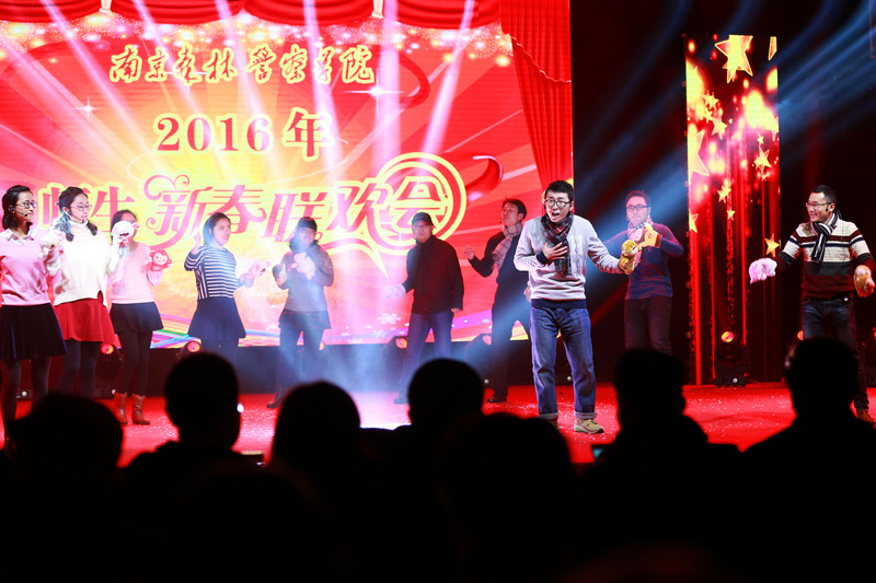 1月14日,南京森林警察学院2016年师生新春联欢会在仙林校区警体馆举行。校领导王邱文、张高文、张治平、李明、林平、陶珑、吉小林与离退休老同志、全体教职工及15级新生欢聚一堂,辞旧迎新。