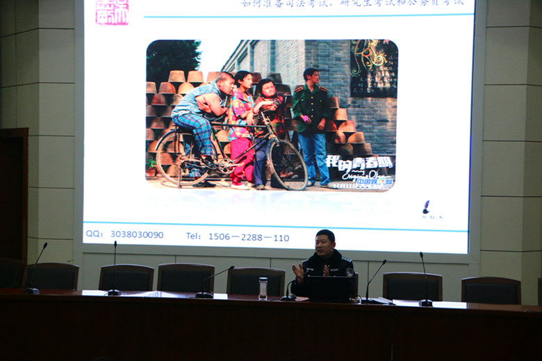 讲座伊始,吴老师以“《翠鸟》开了我的窍”谈起了自己的童年,并讲述了自己在求学之路的坎坷与精彩。很多事例告诉我们,人的出身不可选择,但可以通过自身努力去争取更多的机会。随后,吴老师又从自己备考司法考试、硕士与博士研究生考试的经历讲起,就这三大考试提出自己的备考建议和技巧。并系统的向大家阐述了司法考试和研究生考试特点与规律,让有此想法的同学积极备考。最后,吴老师结合公安招录培养制度改革政策向大家提出公务员考试和公安院校联考备考方法,并详细解读了刚刚发布的《2016年度公安机关执法勤务职位面向公安院校公安专业毕业生招录人民警察专业科目考试大纲》,向大家提出了复习备考的注意事项。并用自创的一首《时间·眼睛·飞》诗歌结束本次讲座。