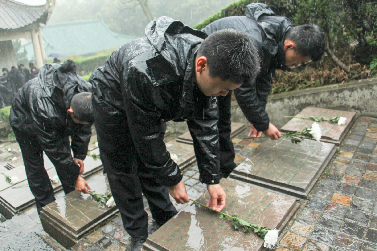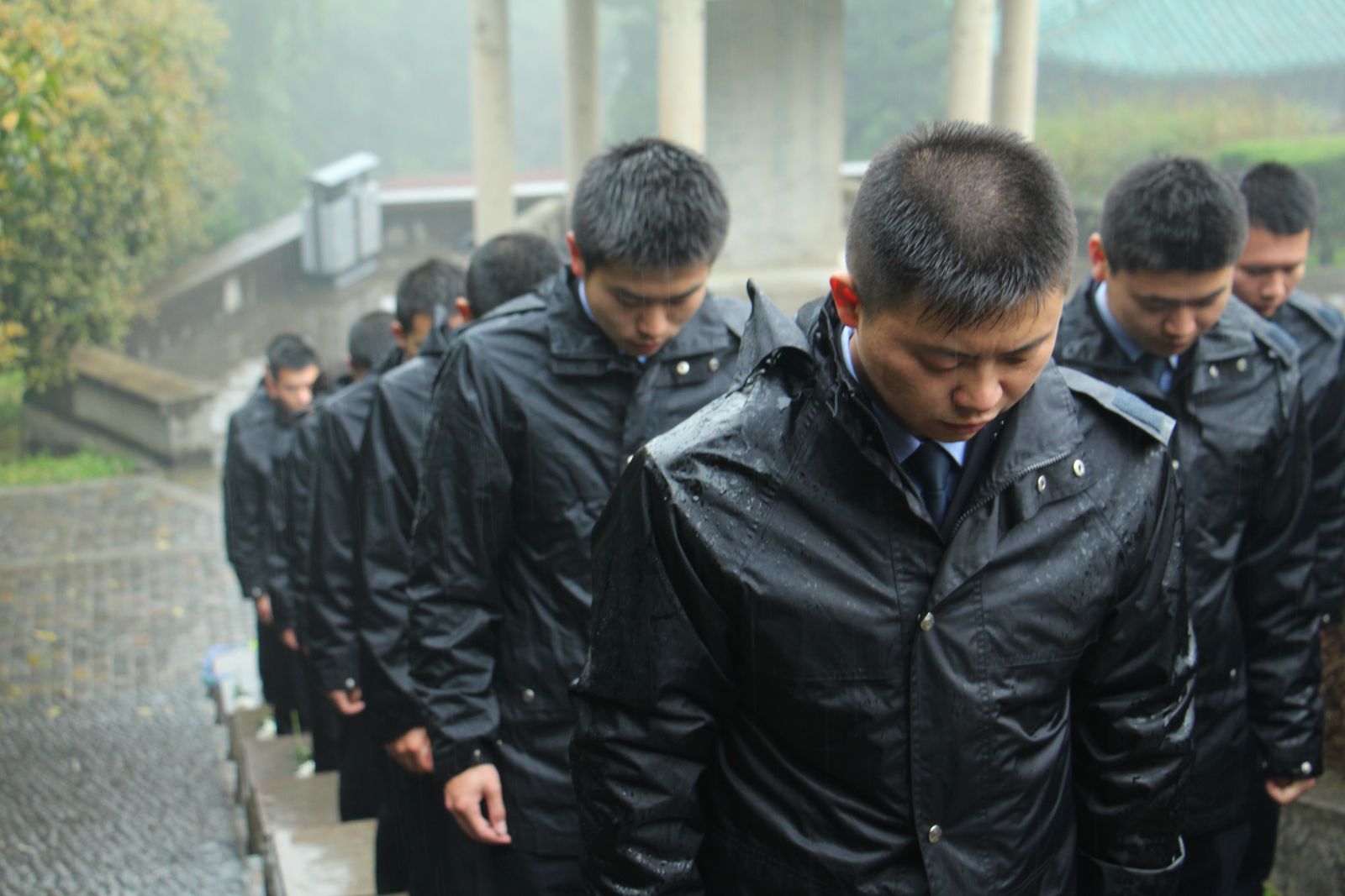 上午9点,天空飘洒的细雨越来越大,但同学们准时到达烈士陵园。在南京抗日航空烈士纪念碑前,参加祭扫活动的同学们向烈士纪念碑敬献了鲜花,全体肃立默哀三分钟,缅怀抗日爱国先烈,祈愿和平,并瞻仰了每一面镌刻烈士名字的纪念墙,送上了小白花,表达了刑技大队党支部、大队分团委全体党员、团员和同学们对抗日先烈的崇高敬意和深切怀念。