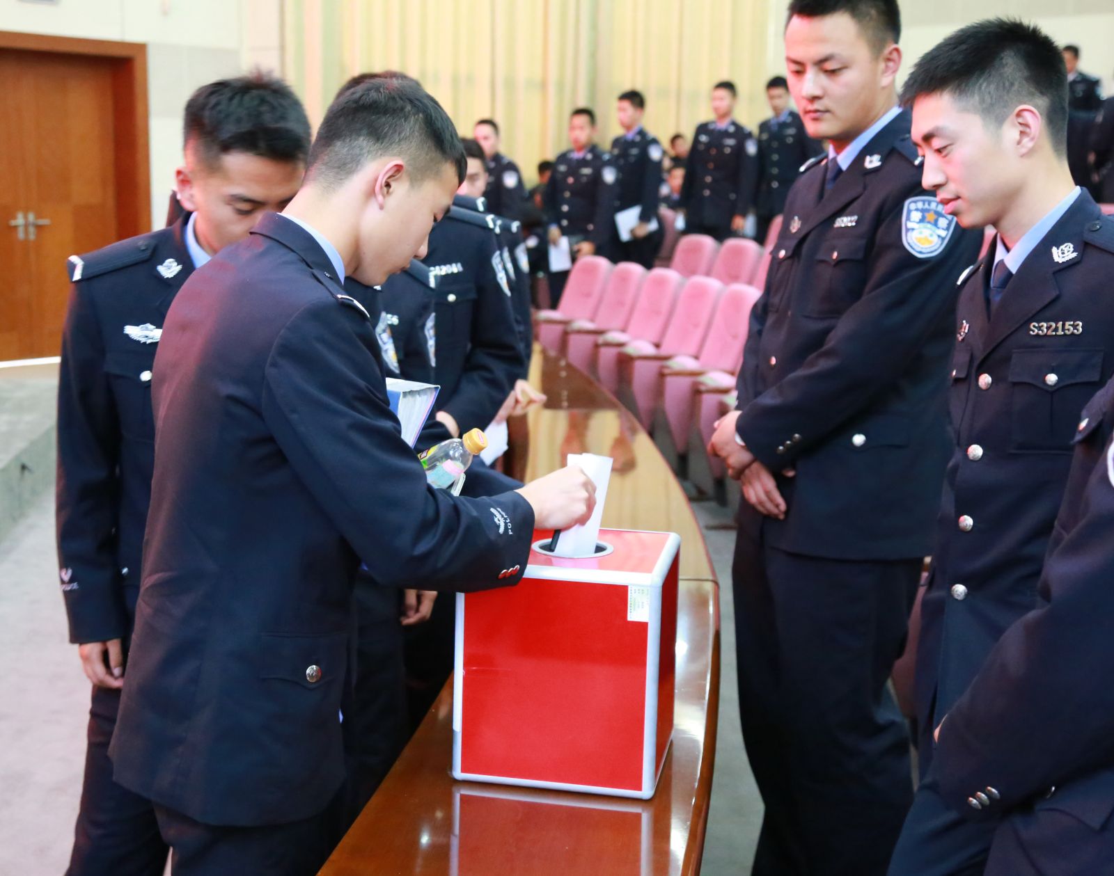 由于治安一大队分团委第一届委员任期即满届,根据《中国共产主义青年团章程》规定需进行换届选举。2016年4月14日,治安一大队分团委在学校大报告厅举行了换届选举仪式。校团委书记乔春华、治安一大队大队长胡小根、大队全体学管老师以及大一、大二全体团员出席了会议。