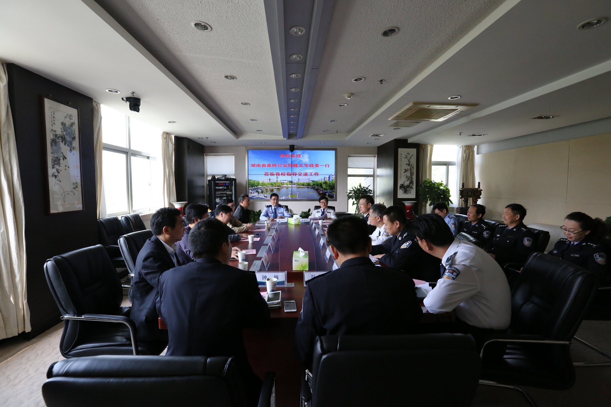 4月22日,湖南省森林公安局政委隆义华一行来我校考察交流,副校长陶珑会见了隆义华一行。学校相关部门负责人参加了交流座谈。