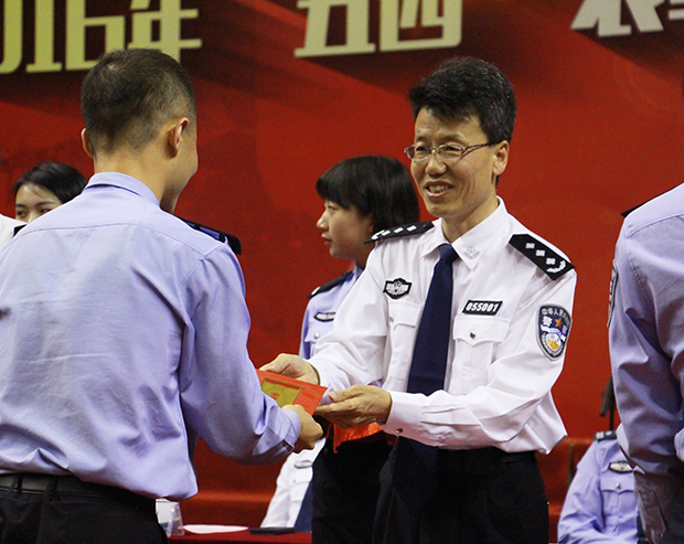 表彰大会由校团委书记乔春华主持。副校长吉小林宣布龙舟队、警乐团、国旗护卫队、国家公祭仪式女警方阵、第二届世界互联网大会安保的集体三等功、校级嘉奖及个人三等功表彰名单。副校长陶珑宣布2015—2016年度“优秀共青团员”“优秀共青团干部”“先进团支部”、2016年“警校十佳”学生、2015年度“江苏省优秀共青团员”“江苏省五四红旗团支部”表彰名单。常务副校长张治平宣布2014—2015学年国家奖学金表彰名单。主席台领导为获奖代表进行了颁奖。视听1401区队的张强代表全体获奖学生发言,他感谢领导和老师的关怀,并表示会继续努力,争取取得更大的成绩。