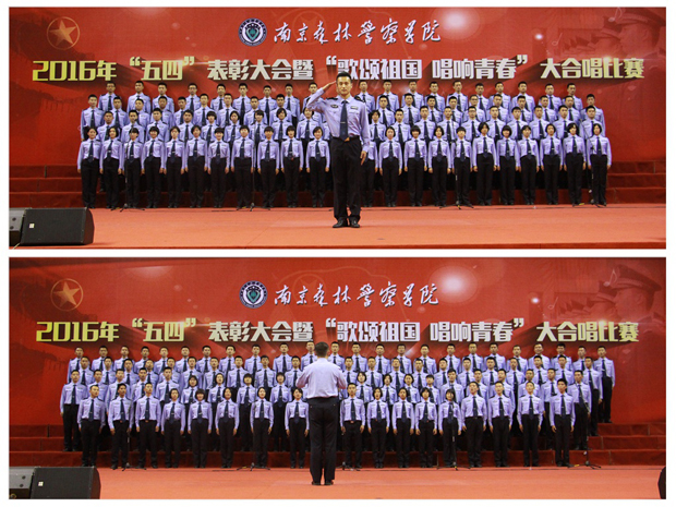 五月,值得向往,令人赞美。在历史上的五月,有一群热血青年作为中国新生代力量登上历史舞台,掀起“五四”运动。而今天,南森学子在自己的舞台上唱响壮美绚丽的青春之歌,弘扬“五四”精神,把青春的火炬传递。这里有“国要强,我们就要担当”的《强军战歌》;这里有“生是中国人,死是中国魂”的《中国军魂》;这里有英雄聚集、无私奉献的《当祖国召唤的时候》……各大队在合唱中都表现出了自己的特色,有的大队展现出了较为专业的合唱功底,有的大队体现出了豪迈的英雄气概,还有的大队将历史与现实同台展示,用鲜活的典型将“五四”精神更加具体化。每首曲目结束,现场都爆发出热烈的掌声和欢呼声,在这个象征着集体荣誉的平台上,“五四”的精神被展现得淋漓尽致。经过激烈角逐,最终刑技大队、管理(消防)大队荣获一等奖,侦查一大队、治安二大队、侦查二大队荣获二等奖,信息大队、治安一大队、特警大队荣获三等奖。