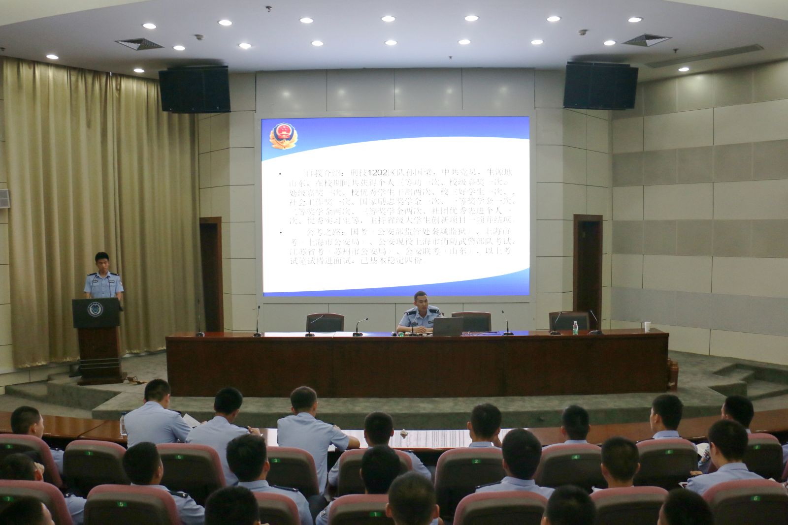 刑技大队在本学期开展了关于加强队风学风建设的系列活动,严抓警务化管理,收到一定成效。在2012级毕业生中涌现出一些在公务员考试中取得优异成绩的学生。为了树立标杆典型,强化示范引领,延续刑技学子淳良踏实、克己勤勉的优良传统,5月6日晚上6:30,刑技1202孙国梁同学给大队2013级全体同学开展了公务员考试备考经验交流会。