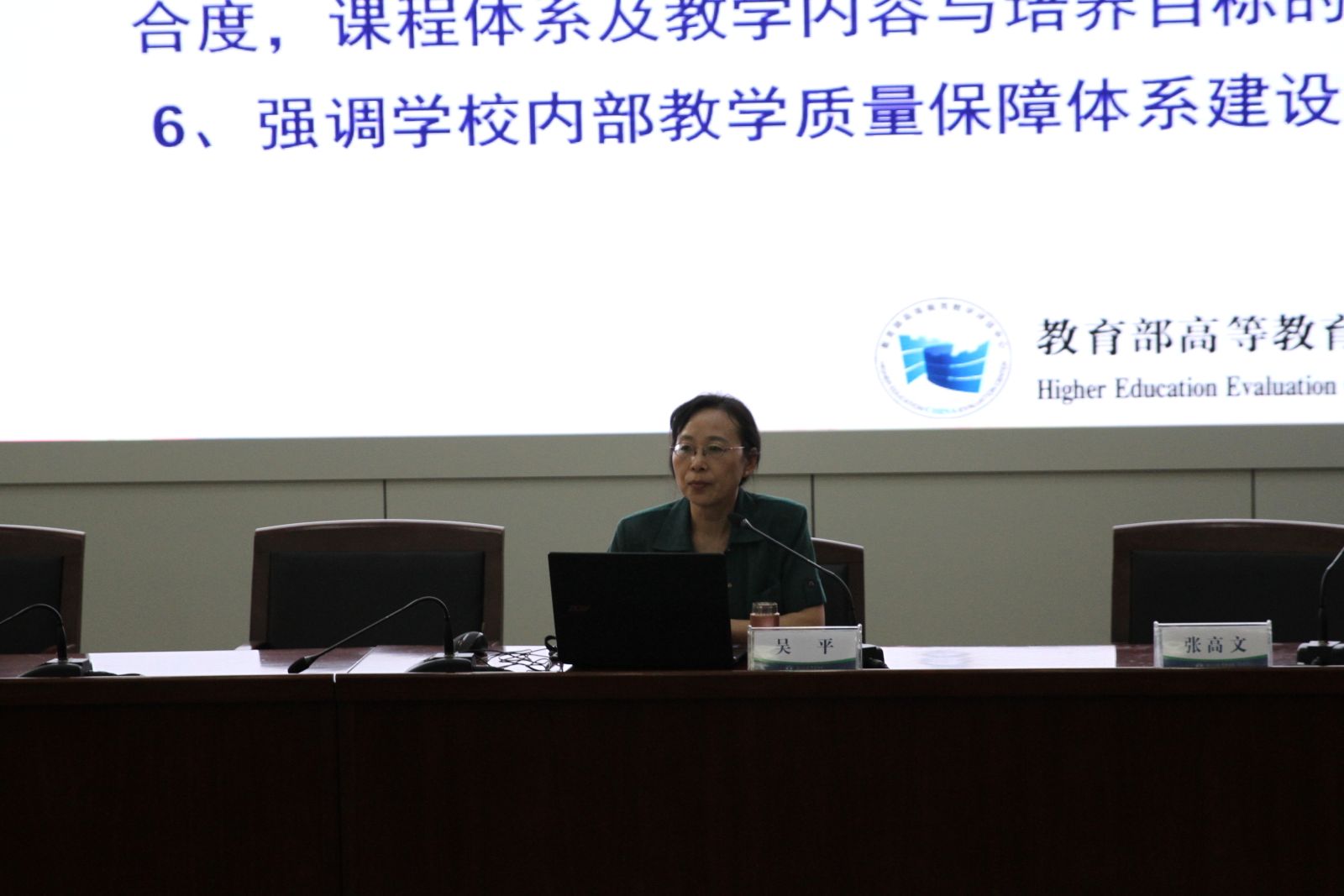 报告会由张高文校长主持,张治平常务副校长、林平副书记、吉小林副校长参加了本次报告会。会上,吴平教授对合格评估指标体系的特点、合格评估指标体系解析及部分合格评估指标的调整说明做专业解读。