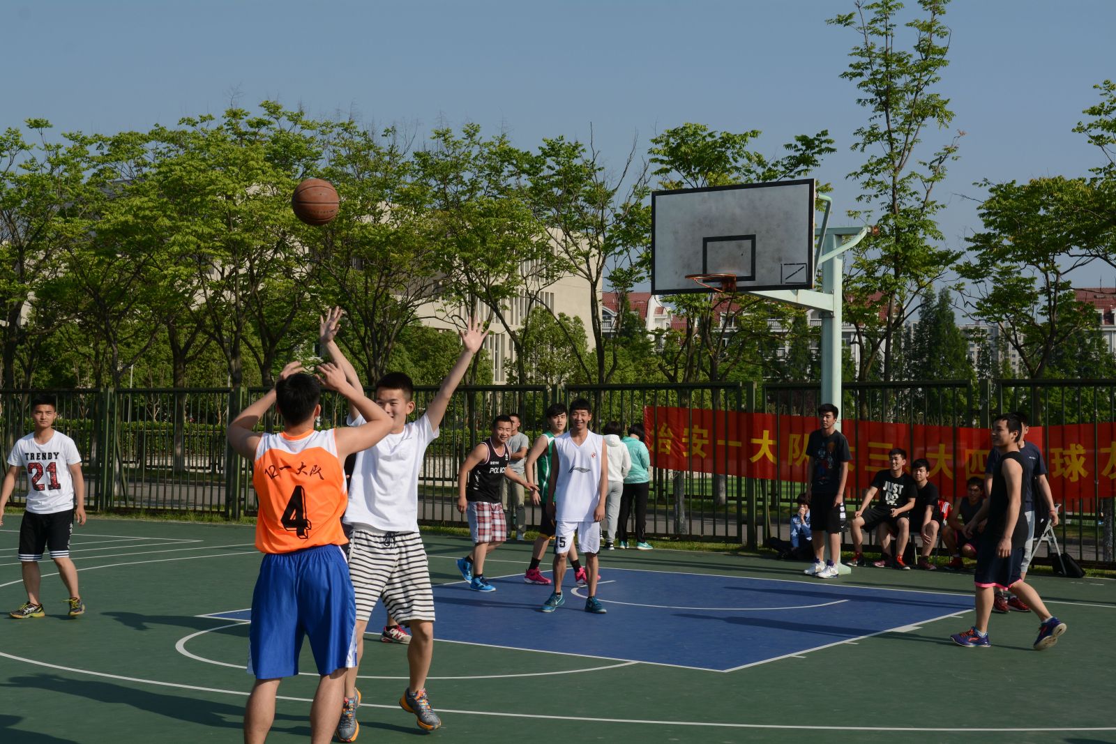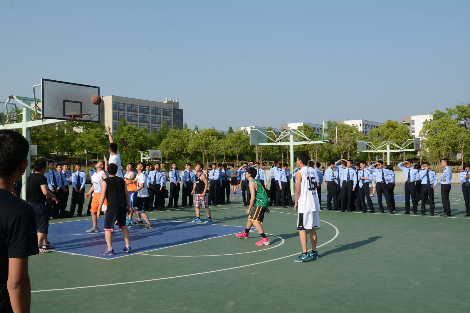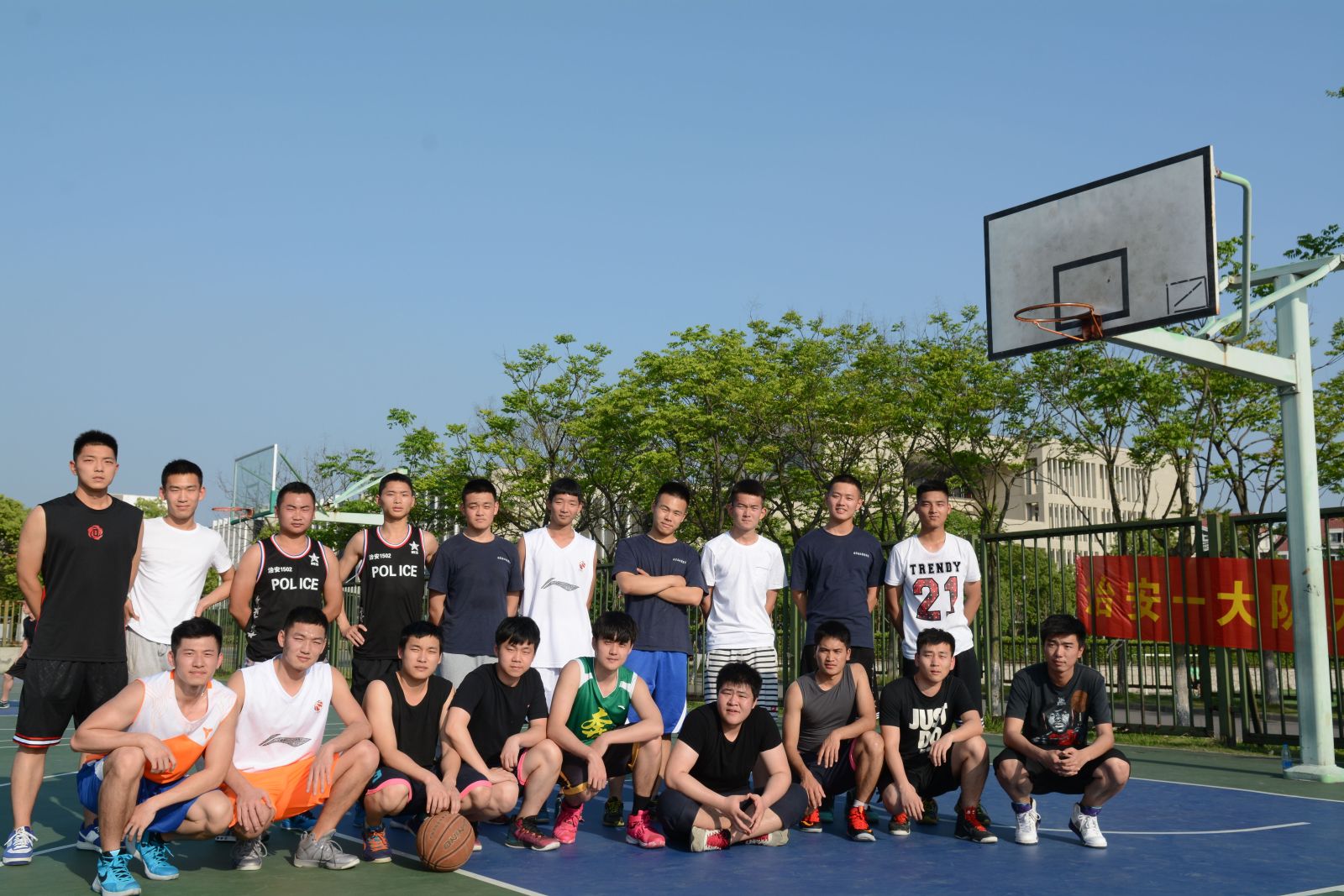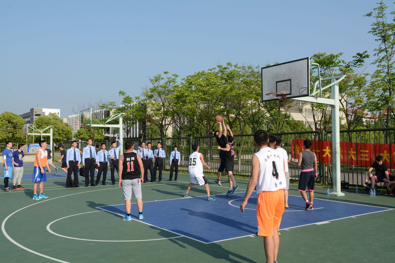刚进入五月,南京便烈日如火,如治安一大队学子在球场上的活力和热情一般。为增进与大四师兄情谊,也为预祝学长们顺利实现就业理想,治安一大队于5月11日下午在篮球场举行了别开生面的“兄弟杯”篮球友谊赛。