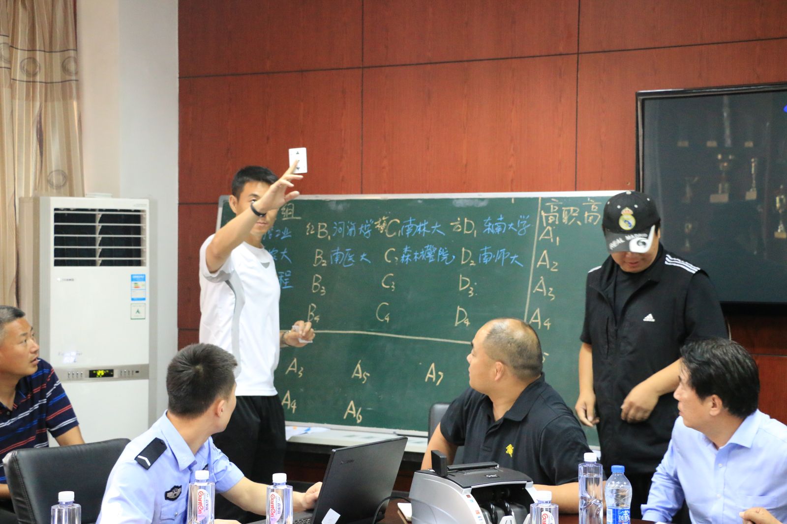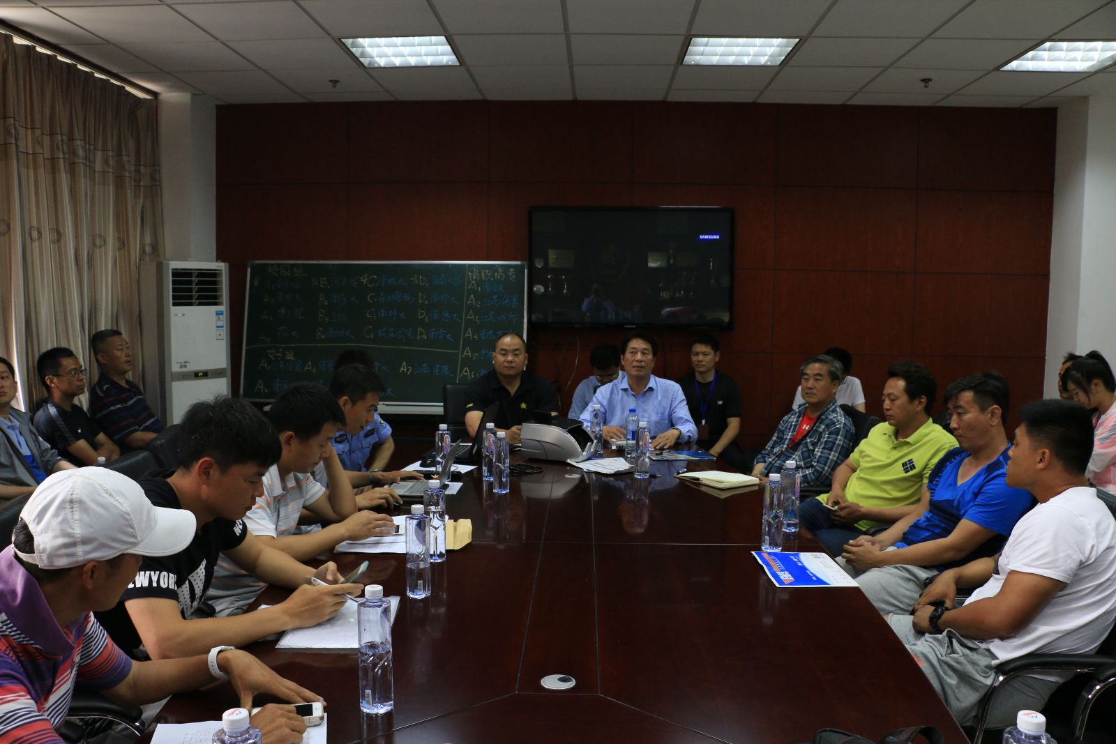 由江苏省学生体协高校工作委员会南京分会、南京市足球运动协会主办,我校和南京医科大学共同承办的2016南京高校大学生足球比赛暨江苏省“省长杯”足球联赛南京赛区预赛即将开赛。本次比赛领队教练员会议,于5月25日下午3点在我校警务技战术系会议室召开,江苏省学生体协高校工作委员会南京分会领导、来自南京高校30多所高校领队、教练员参加会议,会议进行了本科组、专科组、女子组分组、抽签。我校体育工作委员会周波秘书长代表校体育工作委员会对全体参会人员致欢迎辞,江苏省学生体协高校工作委员会南京分会领导河海大学体育系王建民主任对比赛进行了具体部署,本次比赛裁判长南京师范大学周群力教授组织学习了国际足联最新规则裁判法。