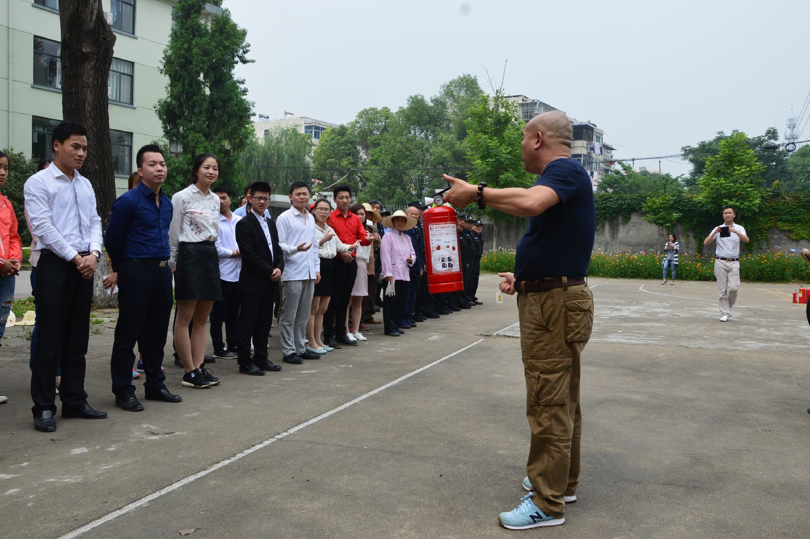 为做好此次消防大演练,保卫处提前制定了演练活动实施方案。演练开始前,由保卫处刘剑明同志在演练现场向在场员工讲解灭火器的使用操作方法及其安全事项,并进行现场灭火操作示范,接着安排员工进行现场灭火大演练。