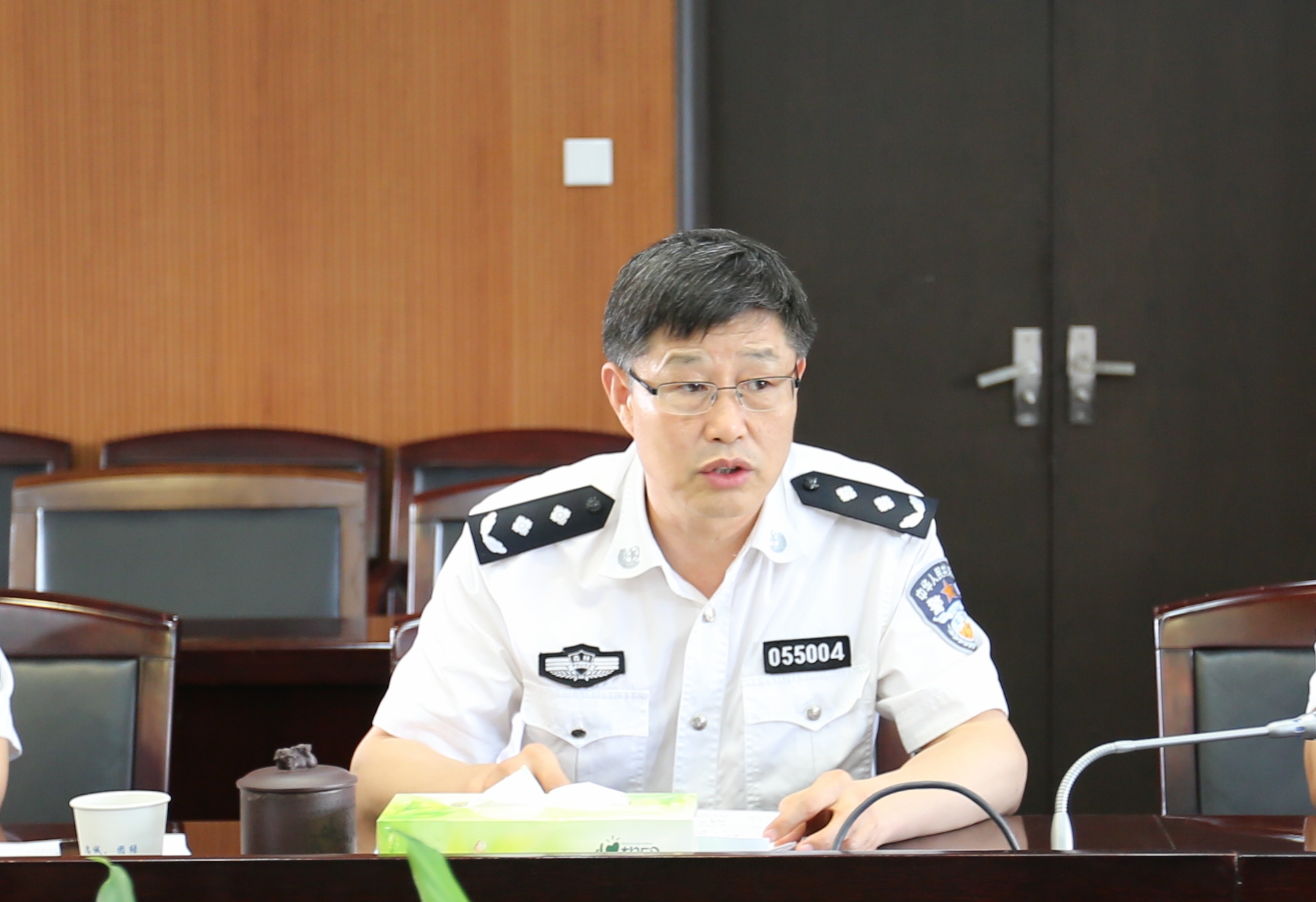 “双千”教官代表、内蒙古大兴安岭森林公安局治安支队政委王何发言,他代表教官们对学校的关怀与重视表示感谢,同时对学校的人才培养、课程设置、实验实训教学等方面的工作提出了宝贵的意见和建议。