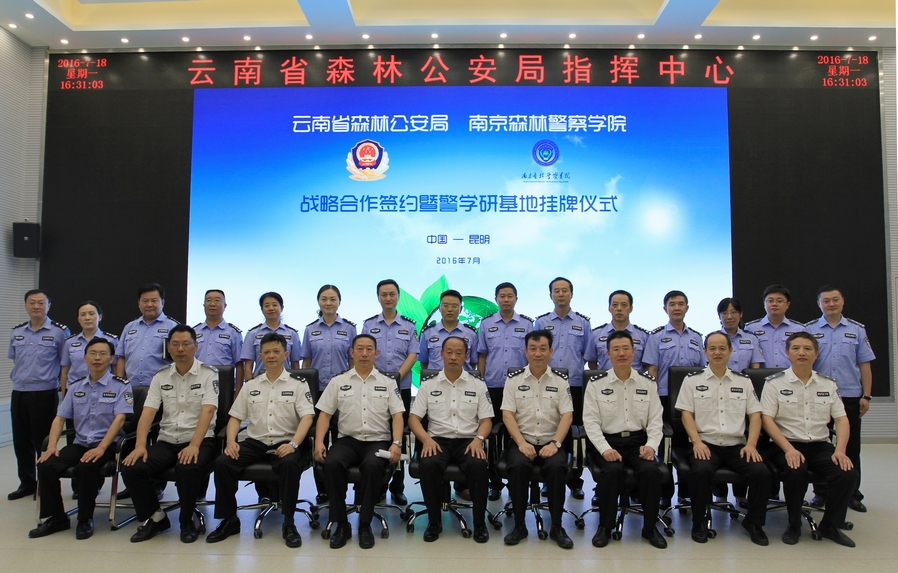 7月18日,南京森林警察学院与云南省森林公安局在昆明签署战略合作框架协议,双方在人才交流、警务培训、科技研发等方面建立合作关系。我校校长张高文,云南省林业厅党组成员、森林公安局局长李华分别讲话并签署协议。我校副校长陶珑出席仪式,云南省森林公安局在家党委班子成员、各部门负责人及我校考察组成员参加签字仪式。云南省森林公安局副局长王同兴主持仪式。