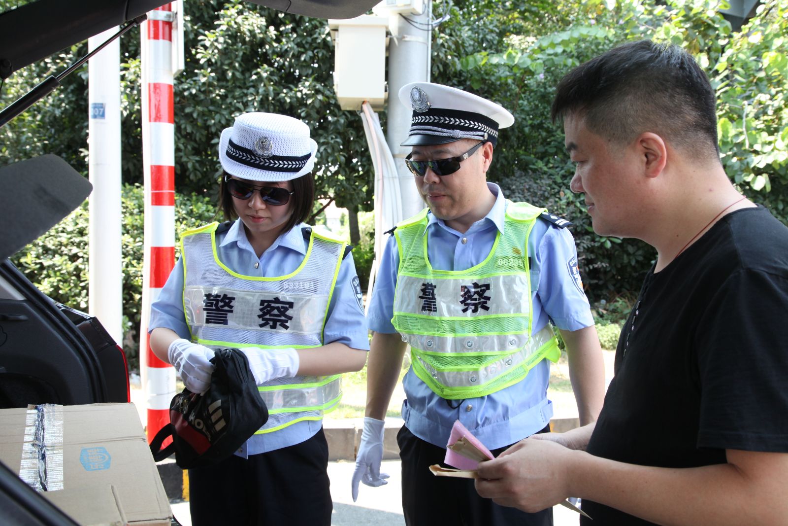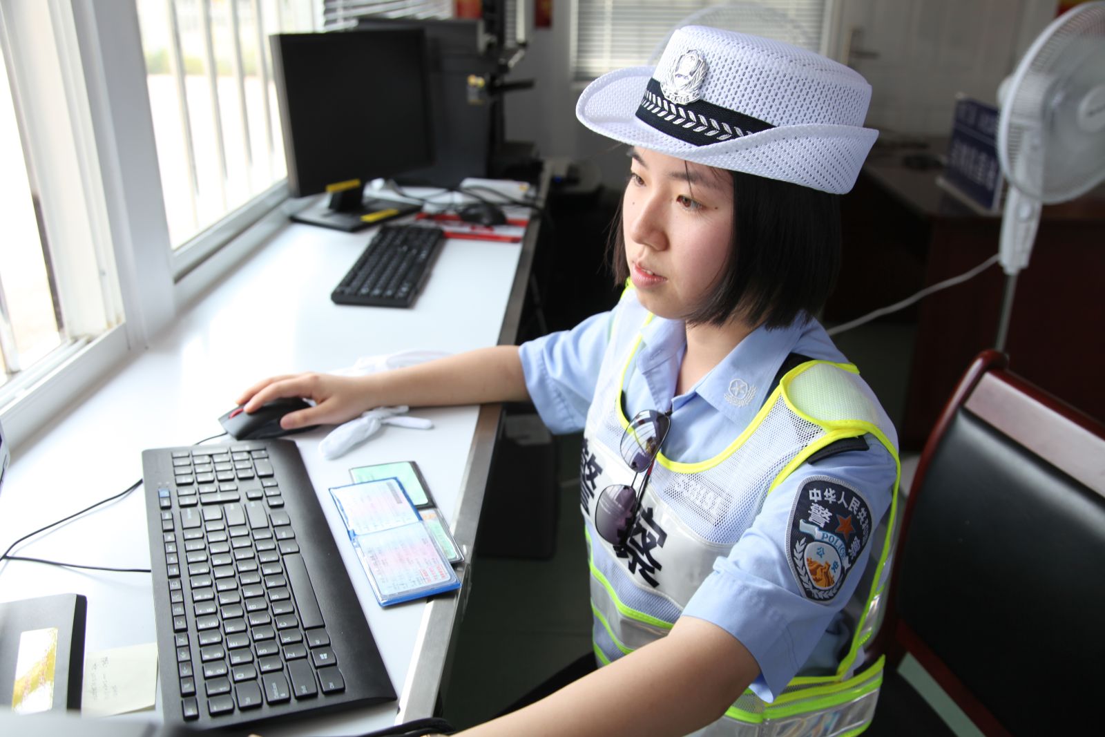 父亲工作忙,离不开宁波,彭佳慧就利用休息的时间赶去宁波看望父亲,还跟着学了几招。某个周一,彭佳慧正好调休,她一早赶到宁波,换上警服,戴上警帽,穿上反光背心,跟着父亲来到宁波市辖区内的一个高速路治安卡口,学习核查车内人员身份、检查车内所载物品。在父亲的亲身示范下,彭佳慧学得很快,没一会儿就能独立检查通行车辆了。在岗点上简单吃过午餐后,她又站在了岗位上。傍晚时分,为了在晚点名之前回到驻地,彭佳慧没来得及吃晚饭,又紧赶慢赶地踏上了回程,与父亲不到一天的相聚就这么匆匆结束了。可是父女俩一点都不觉得遗憾,能够为了同一目标,执行同一任务,完成同一使命,父女俩都认为这样的机会此生难再得,感觉对方仿佛就在身边并肩战斗。