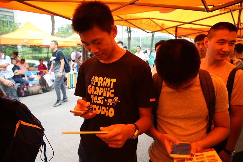 值得注意的是,在报名的各个环节,都有大二大三的学长学姐们热情帮助的身影,在验证身份、缴费、领取服装等环节,有了师兄师姐的引导,新生很幸福。