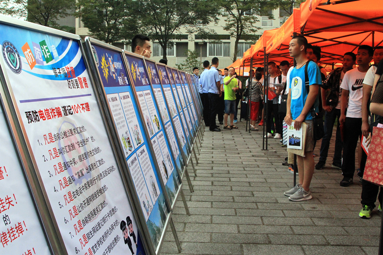此外,针对今年各地电信诈骗频发的现象,保卫处针对性地制作了安全教育展板,面向新生及家长开展防诈骗安全教育,使新生和家长提高安全意识。