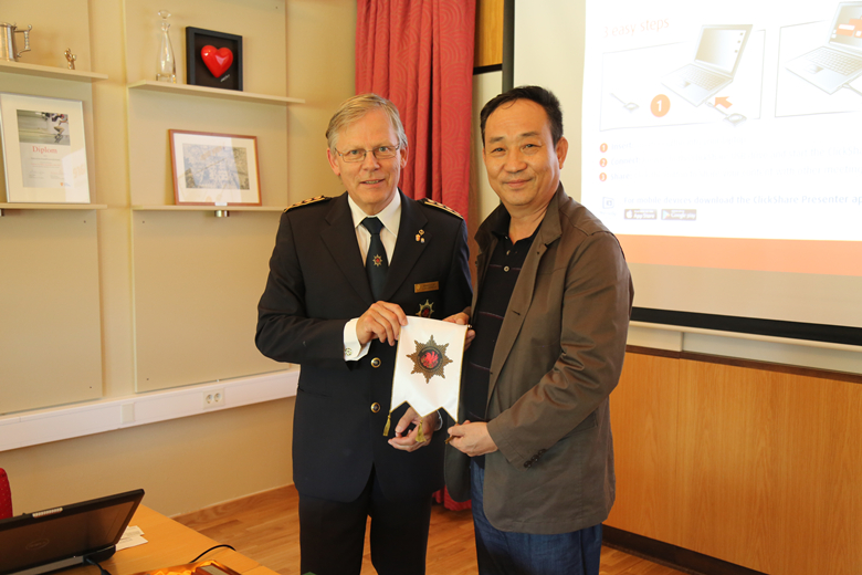 芬兰赫尔辛基中心救援局局长Pekka Vanska先生接待了代表团一行,介绍了芬兰国家消防救援的运作机制,重点推荐了在消防救援方面采用的最新科技。代表团还参观了中心救援局的消防救援车辆与各种装备,就森林防火与救援方面的合作与交流进行了探讨。会后,张高文校长接受了芬兰赫尔辛基中心救援局官员的采访,介绍了森林防火的队伍现状、学历教育、培训和扑救运作机制。