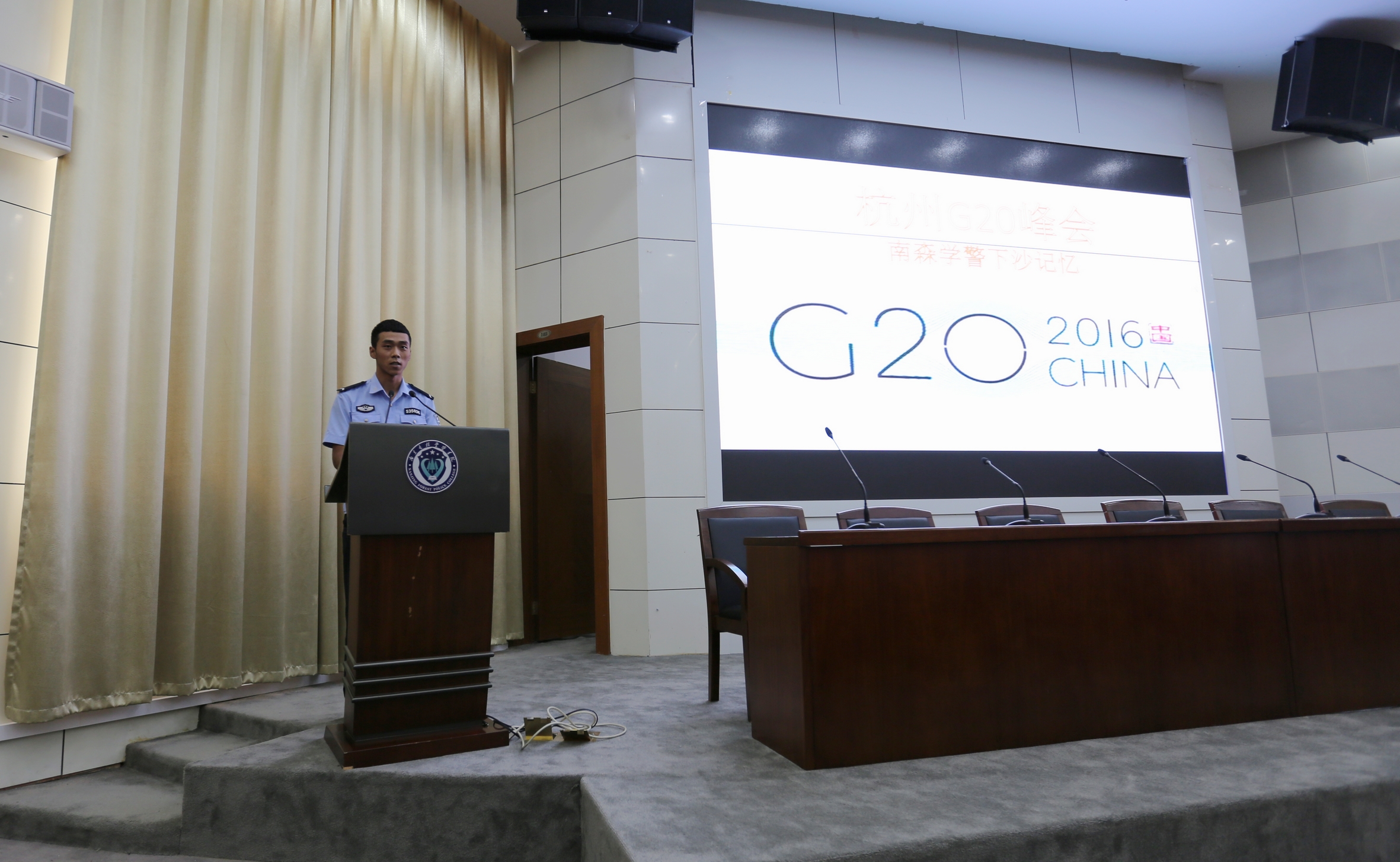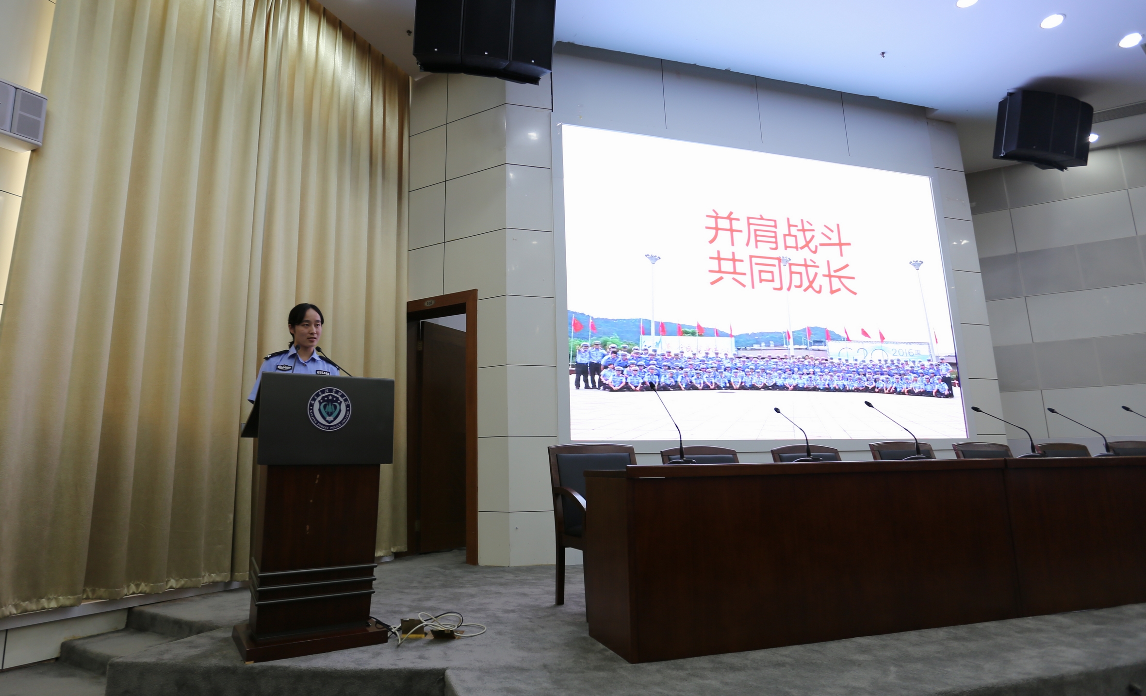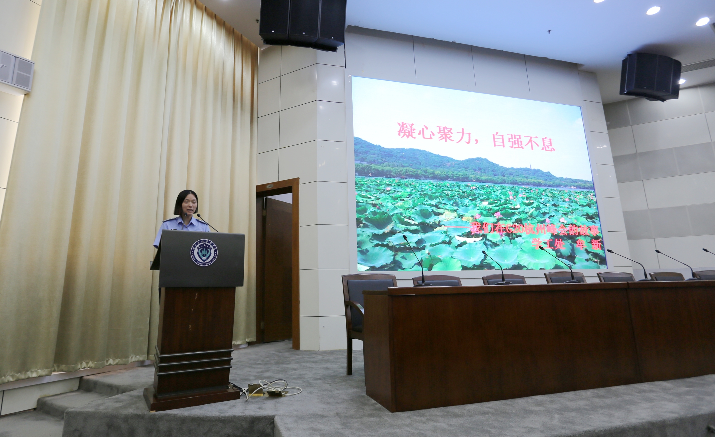 9月21日,我校召开G20杭州峰会安保工作汇报会,会上,6位同学和2位老师代表增援G20杭州峰会安保师生讲述自己的经历、讲述身边的人、身边的故事,听了让人动容、动情、动心。