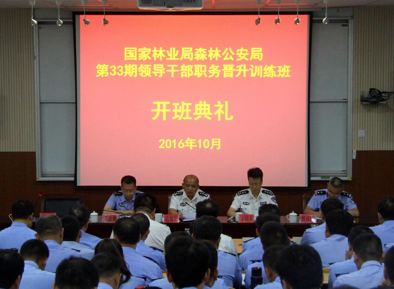 10月11日上午,全国森林公安机关第33期职务晋升训练班开班典礼在警官培训中心举行。国家林业局森林公安局政委焦德发、南京森林警察学院党委书记王邱文、国家林业局森林公安局协调处处长王金海出席典礼,典礼由警官培训中心副主任侯召斌主持。来自全国23省(区)136名参训学员参加了开班仪式。
