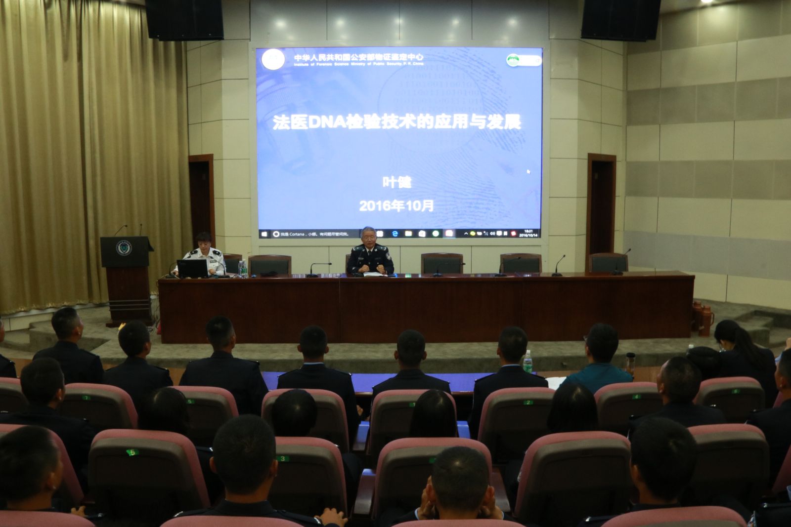 10月14日晚,刑事科学技术系、科技处特邀公安部物证鉴定中心副主任叶健博士在学校大报告厅就法医DNA检验技术的应用和发展开展专题学术讲座。讲座由刑事科学技术系副主任蒋敬主持、郭海涛主任和相关专业教师、以及刑技大队13、14、15级同学到场聆听。