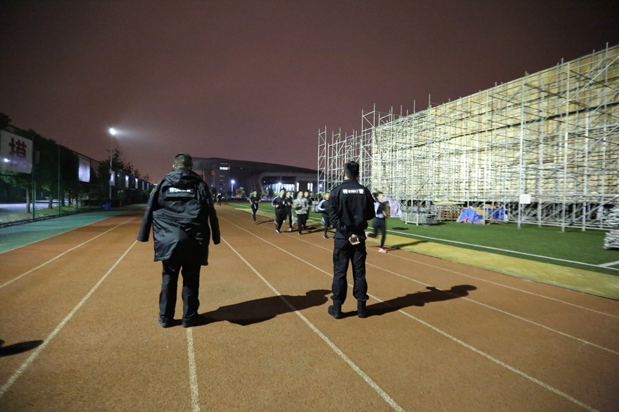 体能教练夏勇手里紧握秒表,中气十足一声令下:“再一圈,加油。”