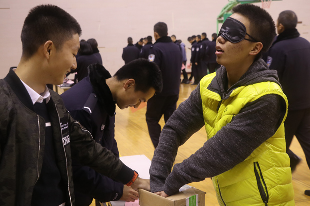 活动通过六个小游戏让同学们分别了体验盲人、肢残人和听障人士的世界。“触觉体验”“参观校园”以及“蒙眼写字”让同学们体验到盲人朋友的黑暗世界,感受到他们在日常生活中遇到的种种困难。“单手穿衣”让同学们设身处地地感受到了肢残人的生活不易。“你划我猜”“情景体验”又让同学们倾听到听障人士内心的无声世界。