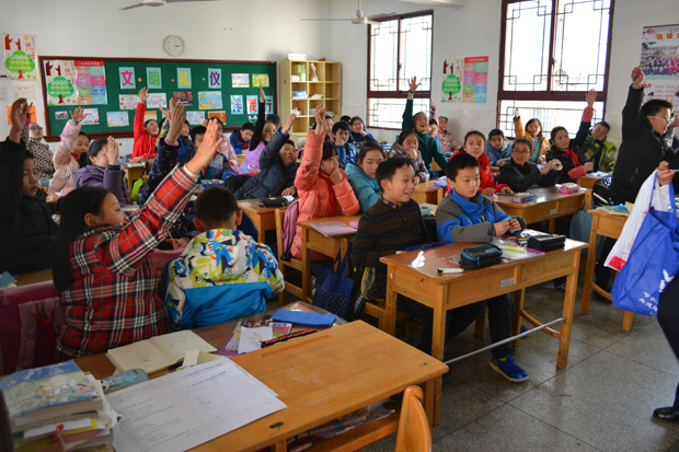 淡淡阳光,舒舒微风。下午两点,志愿者们准时到达南京夫子庙小学,他们以小组为单位分别在四个班级进行节水宣传。志愿者们配合PPT对水资源的现状、缺水带来的危害等进行了详细的阐述。为了寓教于乐,调动小朋友们的学习积极性,志愿者们还通过互动问答、做游戏传授节水小知识。小朋友们踊跃发言,志愿者们耐心讲解,场面热闹,气氛活跃。不知不觉间,活动已接近尾声,小朋友们依依不舍地向志愿者们告别。