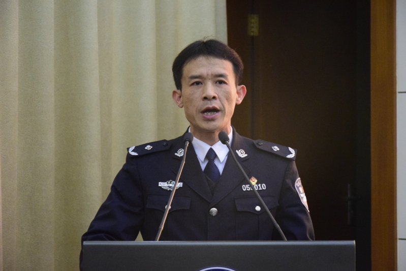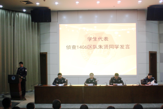 侦查1406区队朱贤和法庭科学技术协会指导老师李浩分别作为学生代表