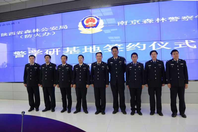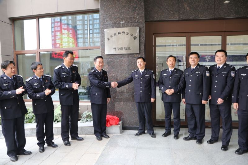 仪式后,张高文和马利民共同为“南京森林警察学院警学研基地”揭牌。出席仪式的领导还与陕西省森林公安局全体民警合影留念。