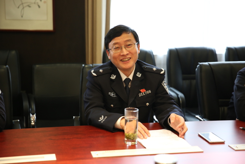 4月6日,栖霞区公安局政委丁报明一行4人来校调研,学校党委副书记、政治部主任林平会见了客人。