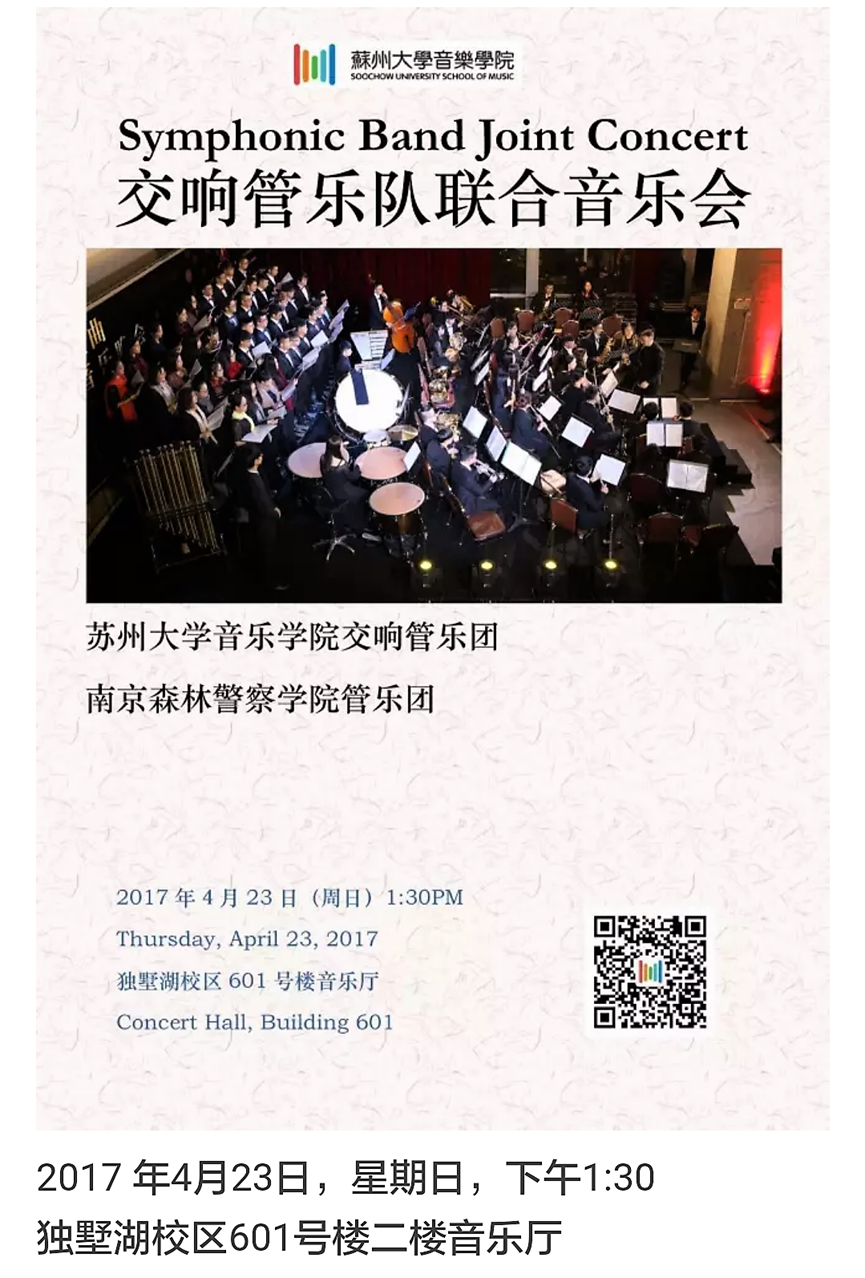 4月23日,我校警乐团在校团委书记乔春华和苗海楠老师的带领下,前往苏州大学音乐学院参加交响管乐队联合音乐会。