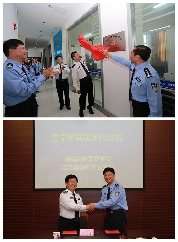 4月24日下午,我校与扬中市公安局警学研共建协议签约暨“学训研战”基地揭牌仪式在扬中市公安局举行。扬中市副市长、公安局党委书记、局长吴明成,扬中市公安局党委副书记、政委仲纪华及党政班子其他成员,我校党委副书记、纪委书记陶珑,教务处处长江林升,信息技术系主任赵明生,信息技术系副主任王新猛,信息技术系办公室主任吴育宝,信息大队学生管理老师胡睿参加了签约暨揭牌仪式。